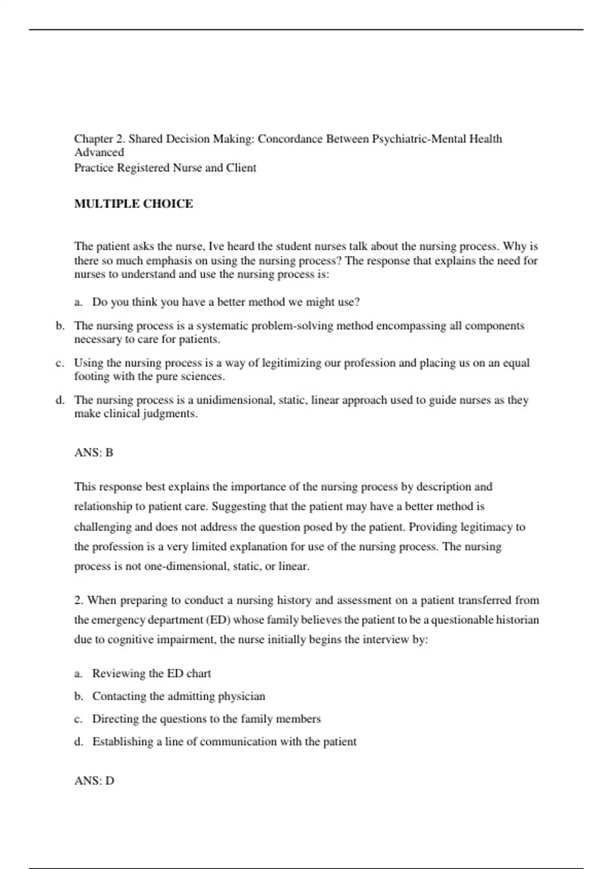 d. The nursing process is a unidimensional, static, linear approach used to guide nurses as they