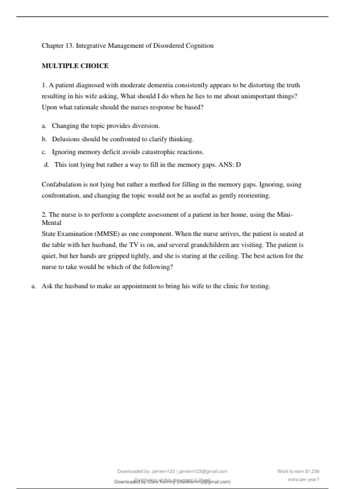 1. A patient diagnosed with moderate dementia consistently appears to be distorting the truth