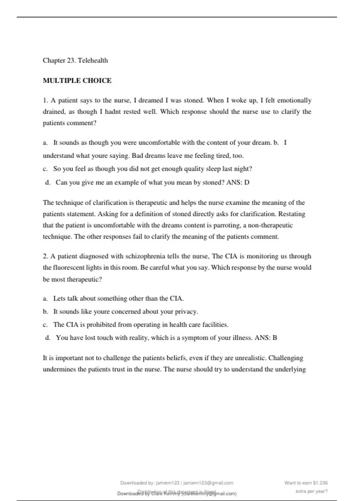 1. A patient says to the nurse, I dreamed I was stoned. When I woke up, I felt emotionally