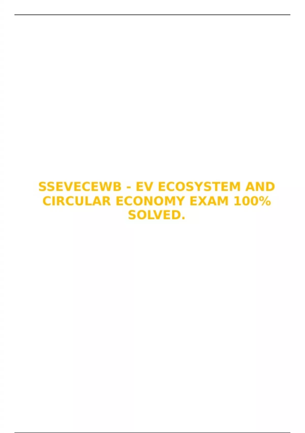 SSEVECEWB - EV ECOSYSTEM AND CIRCULAR ECONOMY EXAM 100% SOLVED.