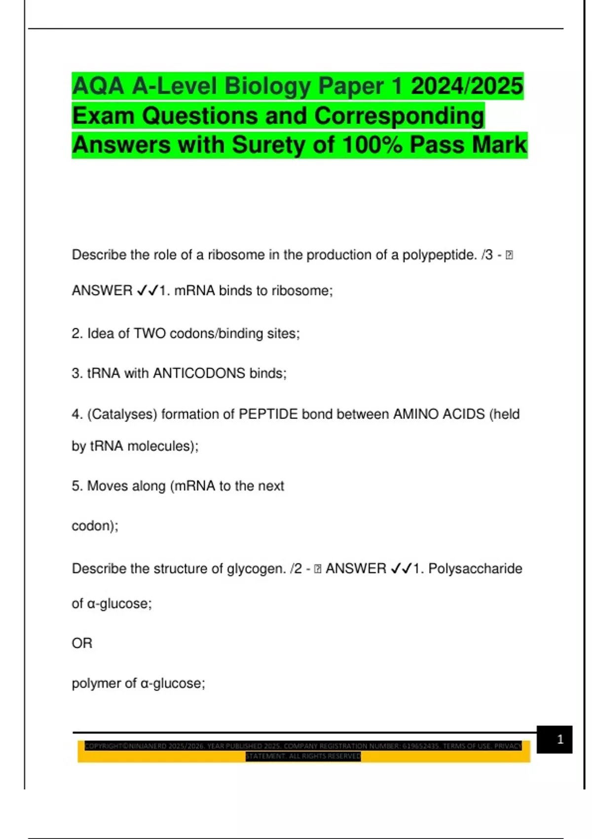 Describe the role of a ribosome in the production of a polypeptide. /3 - 🧠