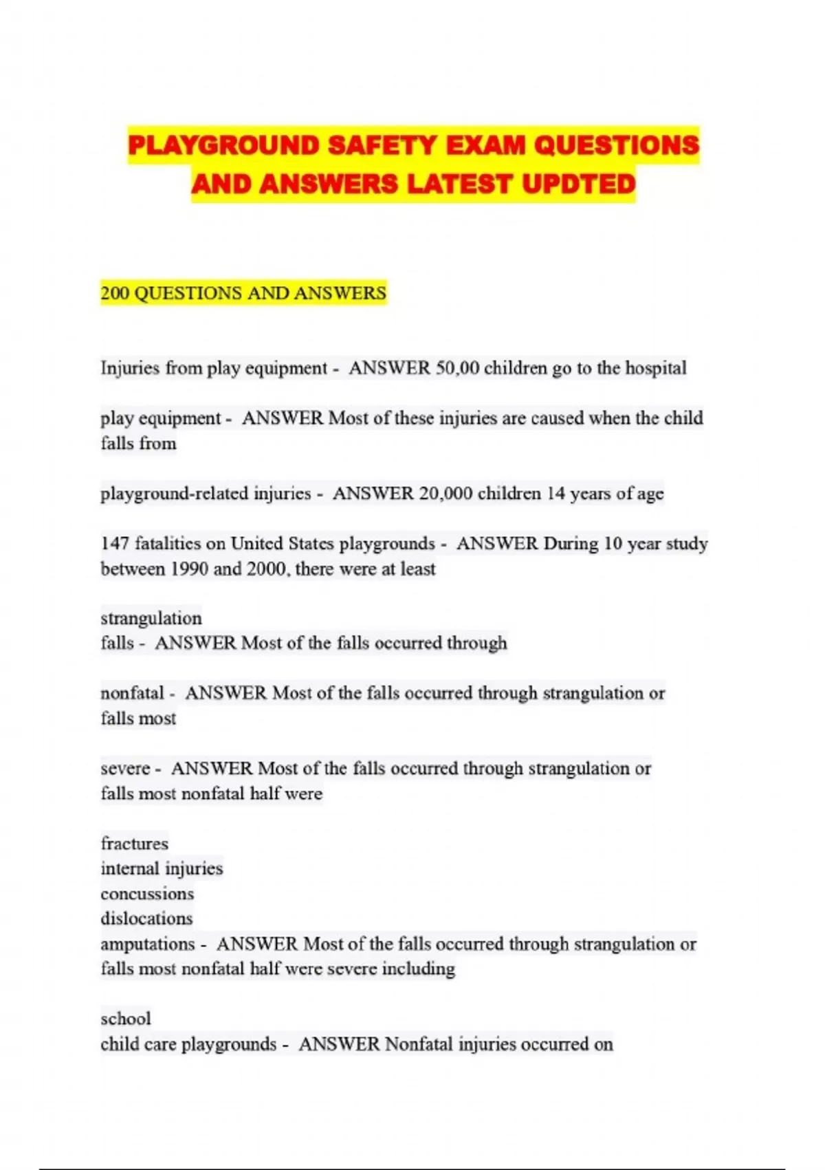 PLAYGROUND SAFETY EXAM QUESTIONS AND ANSWERS LATEST UPDTED