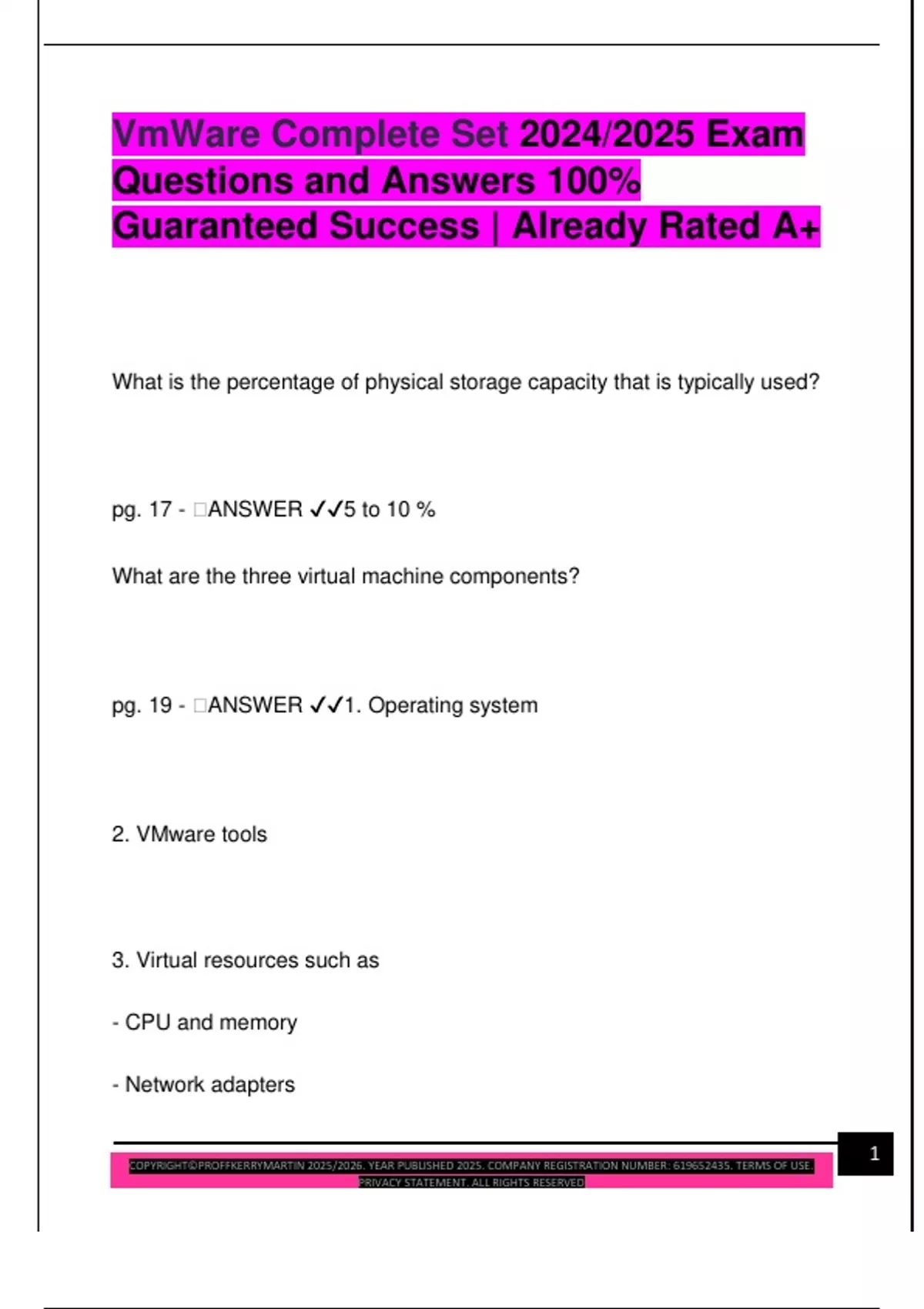 VmWare Complete Set 2024/2025 Exam Questions and Answers 100% Guaranteed Success | Already Rated A+ What is the percentage of physical storage capacity that is typically used? pg. 17 -
