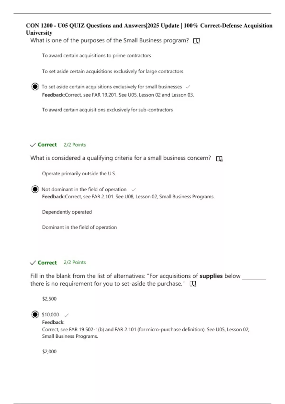 Feedback:Correct, see FAR 2.101. See U08, Lesson 02, Small Business Programs.