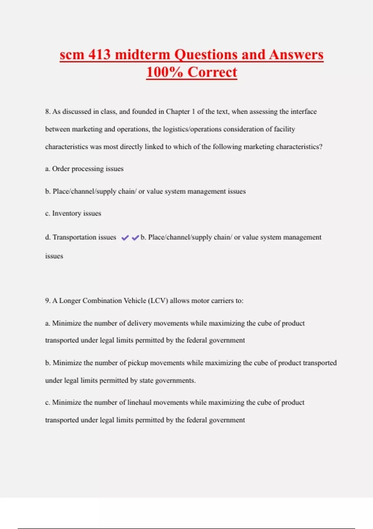 d. Transportation issues b. Place/channel/supply chain/ or value system management