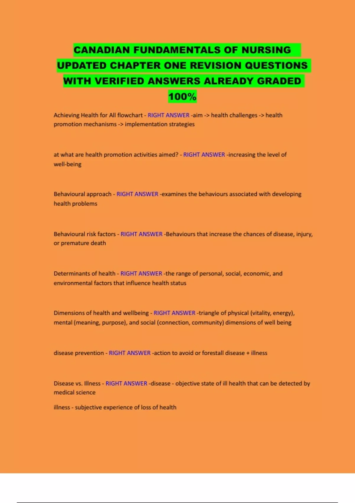CANADIAN FUNDAMENTALS OF NURSING UPDATED CHAPTER ONE REVISION QUESTIONS WITH VERIFIED ANSWERS ALREADY GRADED 100%