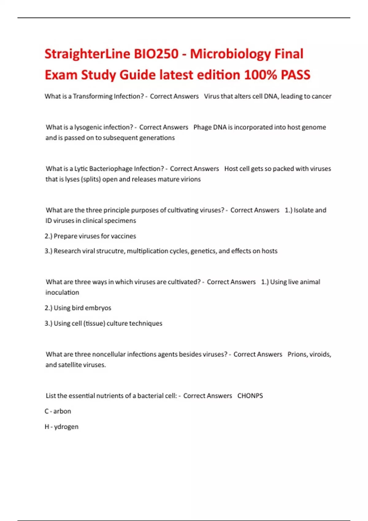 II! List the essential nutrients of a bacterial cell: - Correct Answers CHONPS