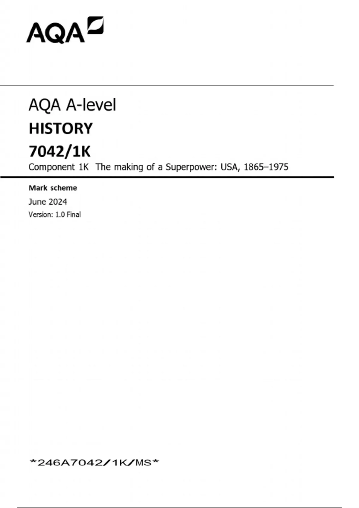 AQA A-level HISTORY 7042/1K Component 1K The making of a Superpower: USA, 1865–1975 Mark scheme June 2024