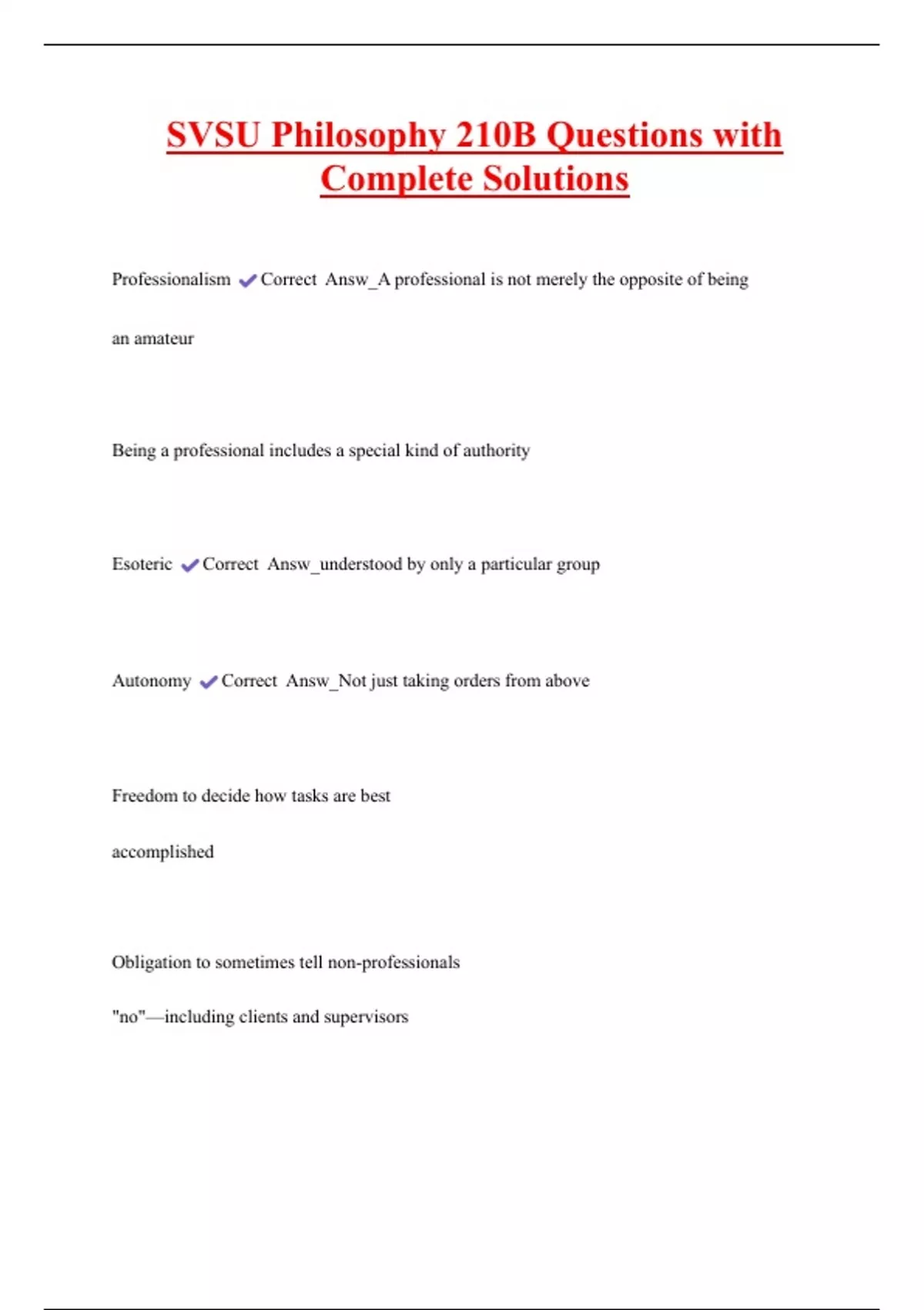 Professionalism Correct Answ_A professional is not merely the opposite of being