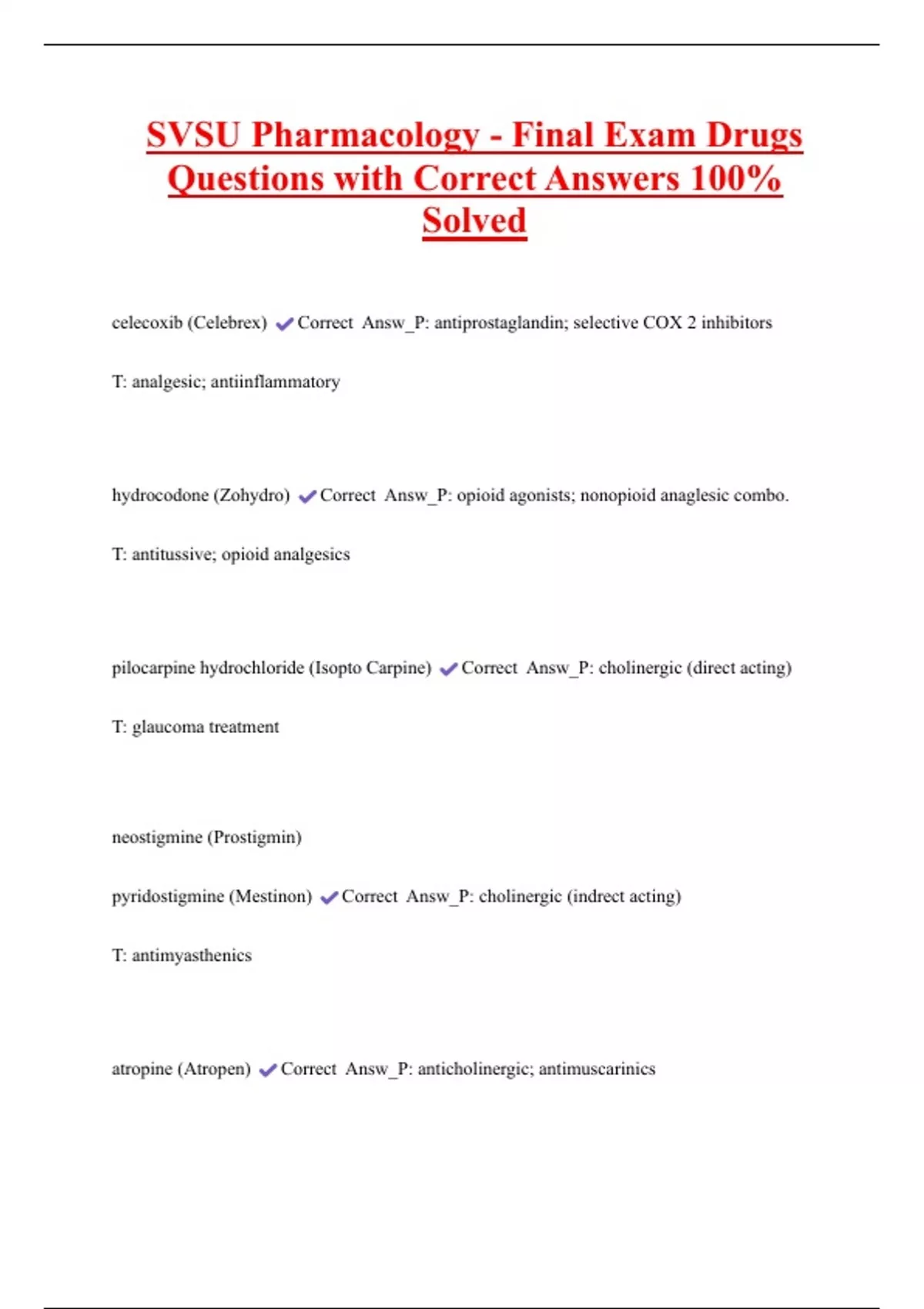 pilocarpine hydrochloride (Isopto Carpine) Correct Answ_P: cholinergic (direct acting)