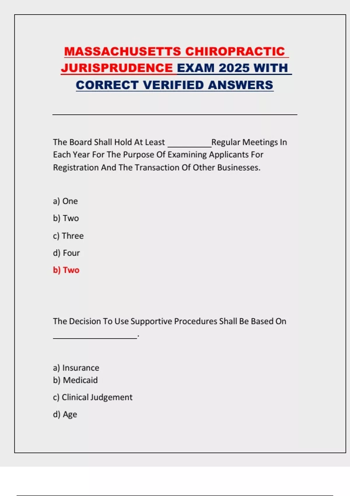 MASSACHUSETTS CHIROPRACTIC JURISPRUDENCE EXAM 2025 WITH CORRECT VERIFIED ANSWERS