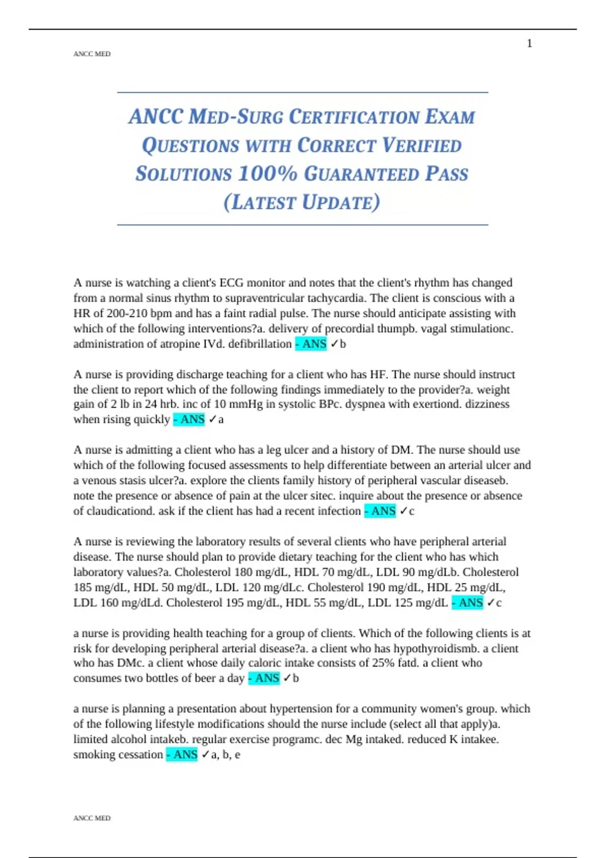 ANCC MED-SURG CERTIFICATION EXAM