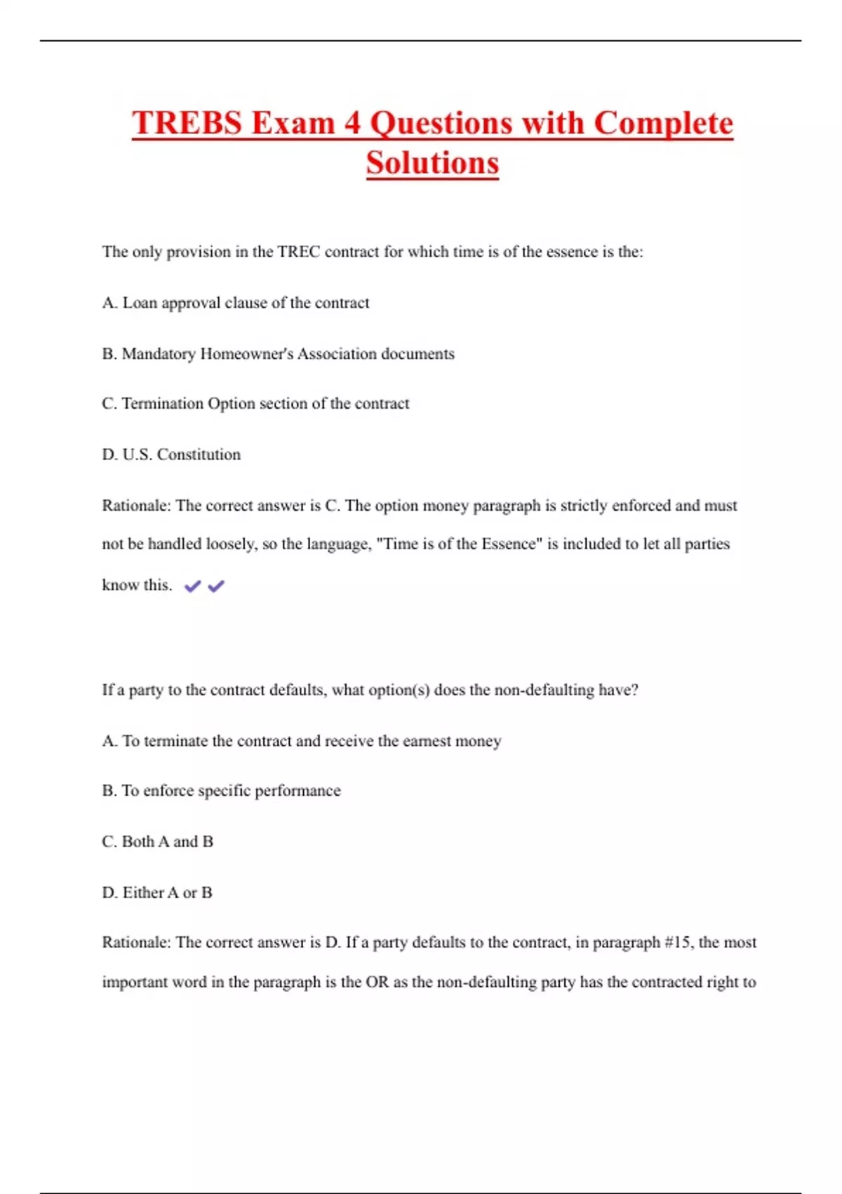 Rationale: The correct answer is D. If a party defaults to the contract, in paragraph #15, the most