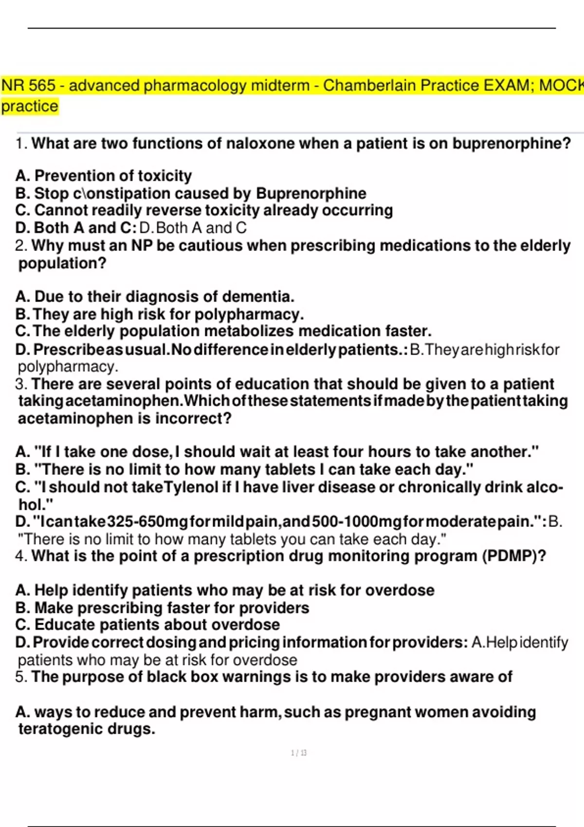NR 565 - advanced pharmacology midterm - Chamberlain Practice EXAM; MOCK practice questions and solutionsNR 565 - advanced pharmacology midterm - Chamberlain Practice EXAM; MOCK practice questions and solutionsNR 565 - advanced pharmacology midterm - Chamberlain Practice EXAM; MOCK practice questions and solutionsNR 565 - advanced pharmacology midterm - Chamberlain Practice EXAM; MOCK practice questions and solutions