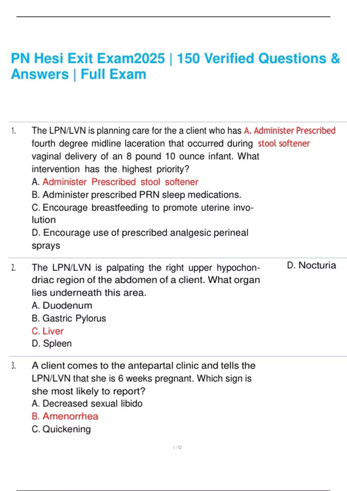 PN Hesi Exit Exam2025 | 150 Verified Questions & Answers | Full Exam