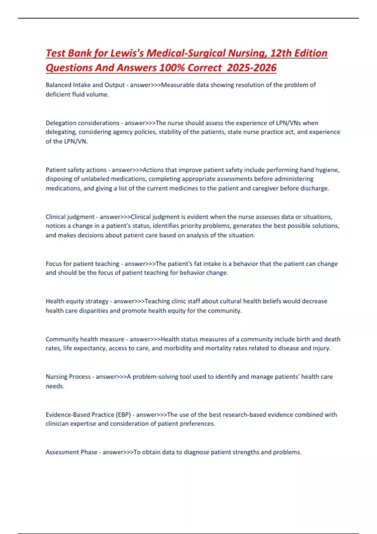 Test Bank for Lewis's Medical-Surgical Nursing, 12th Edition