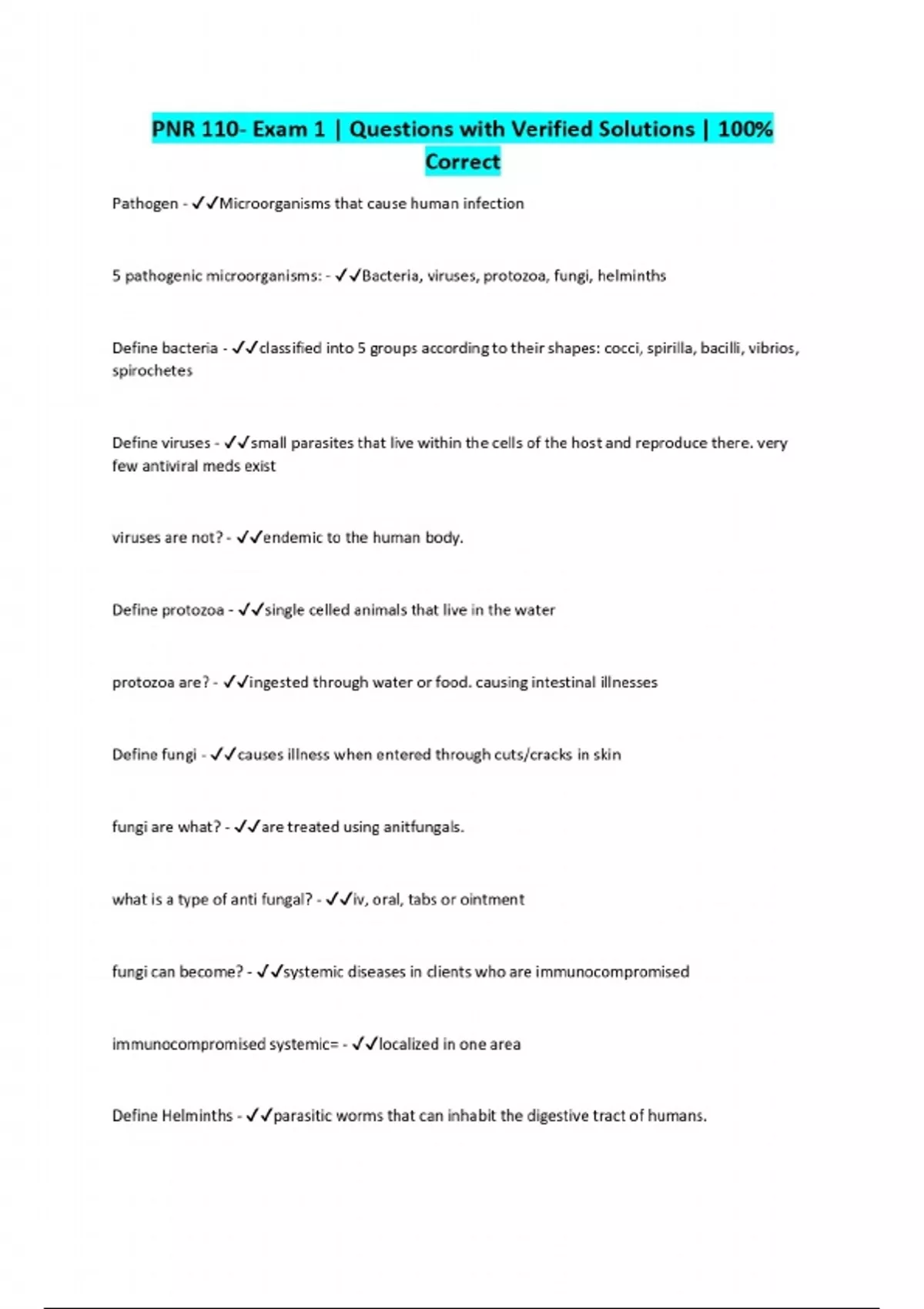 PNR 110- Exam 1 | Questions with Verified Solutions | 100% Correct