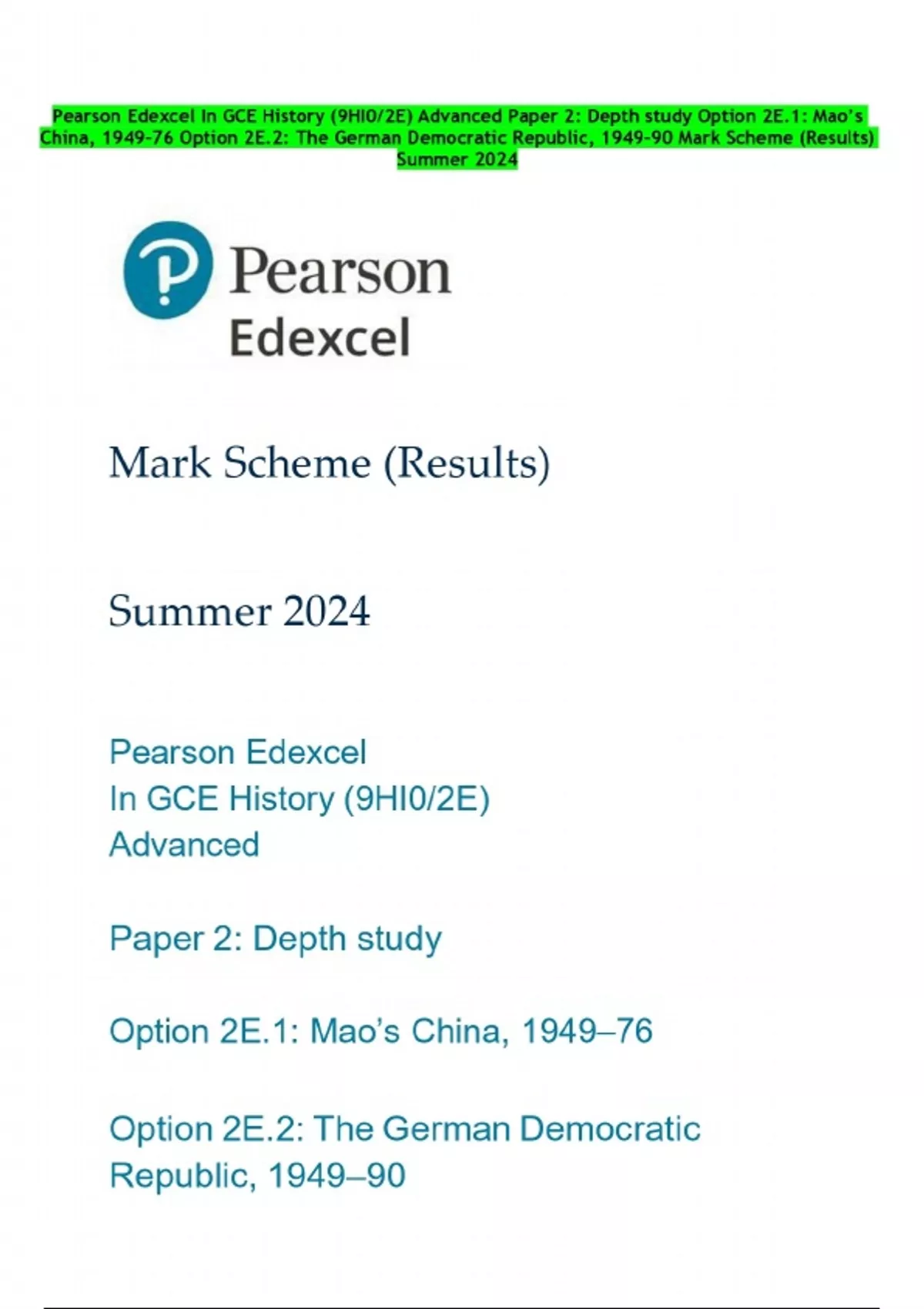 Pearson Edexcel In GCE History (9HI0/2E) Advanced Paper 2: Depth study Option 2E.1: Mao’s China, 1949–76 Option 2E.2: The German Democratic Republic, 1949–90 Mark Scheme (Results) Summer 2024