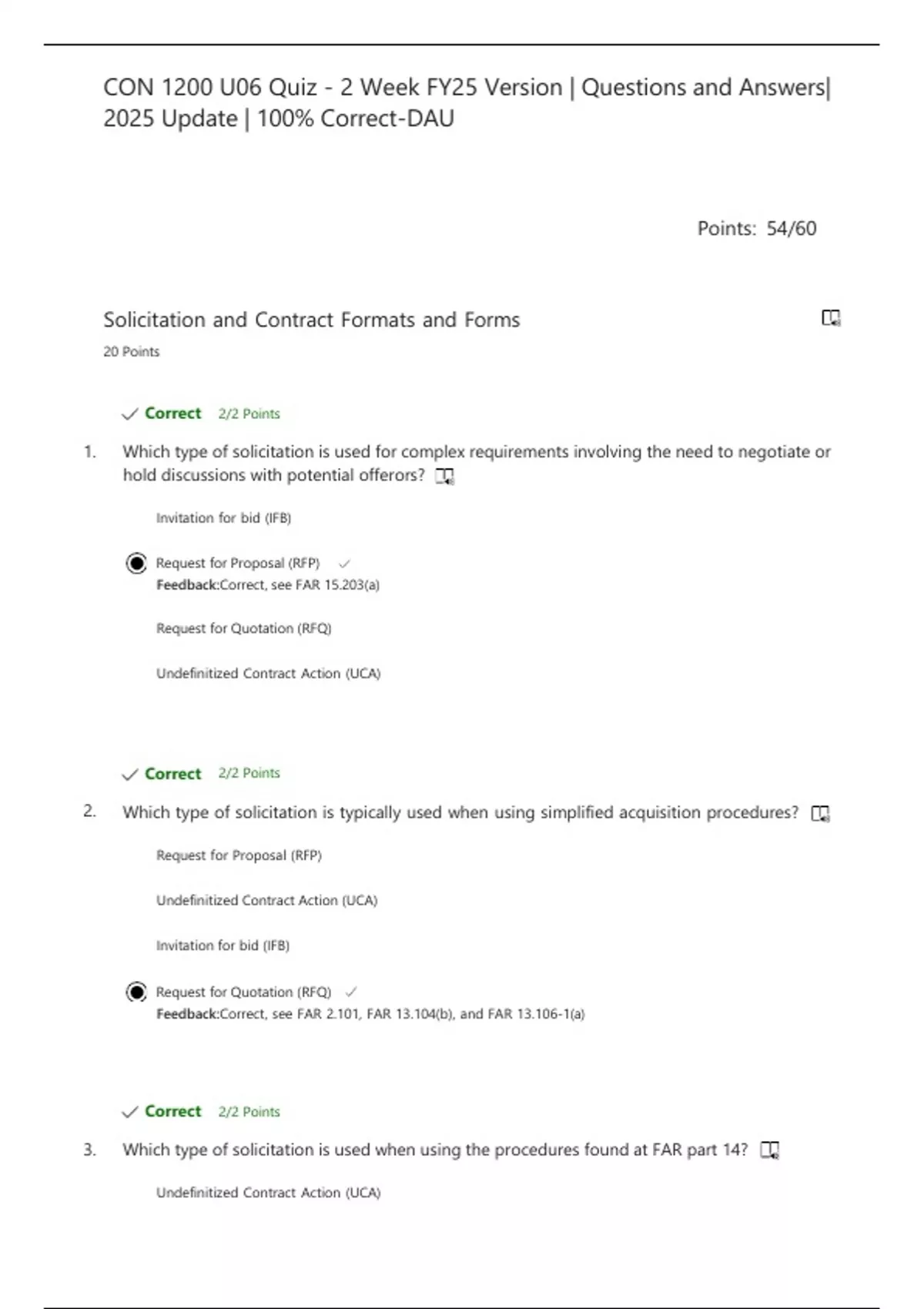 Feedback:Correct, see FAR 2.101, FAR 14.000(b), and FAR 14.201