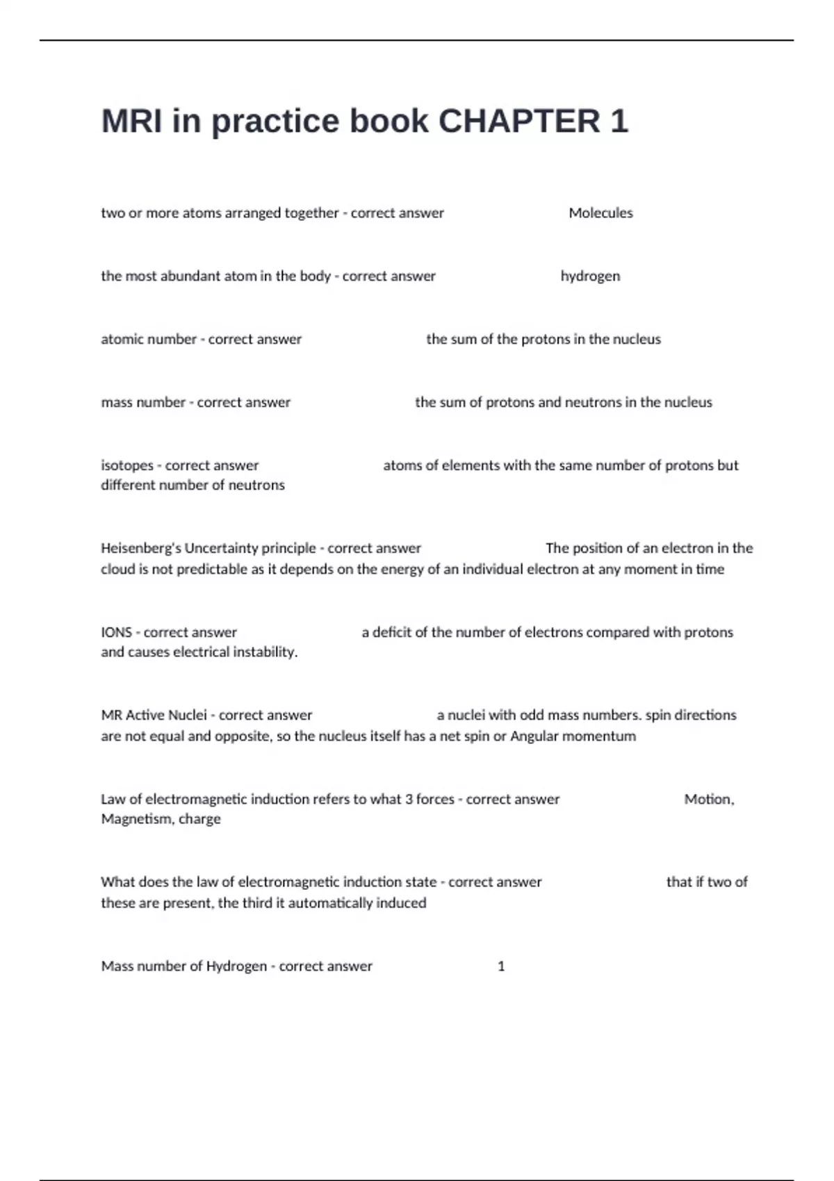 the most abundant atom in the body - correct answer hydrogen
