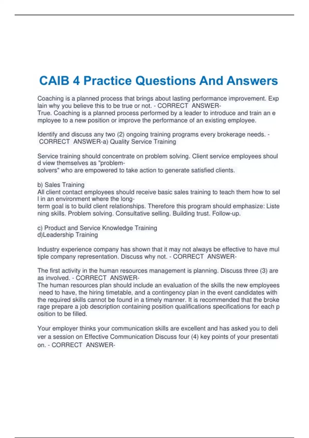 CAIB 4 Practice Questions And Answers