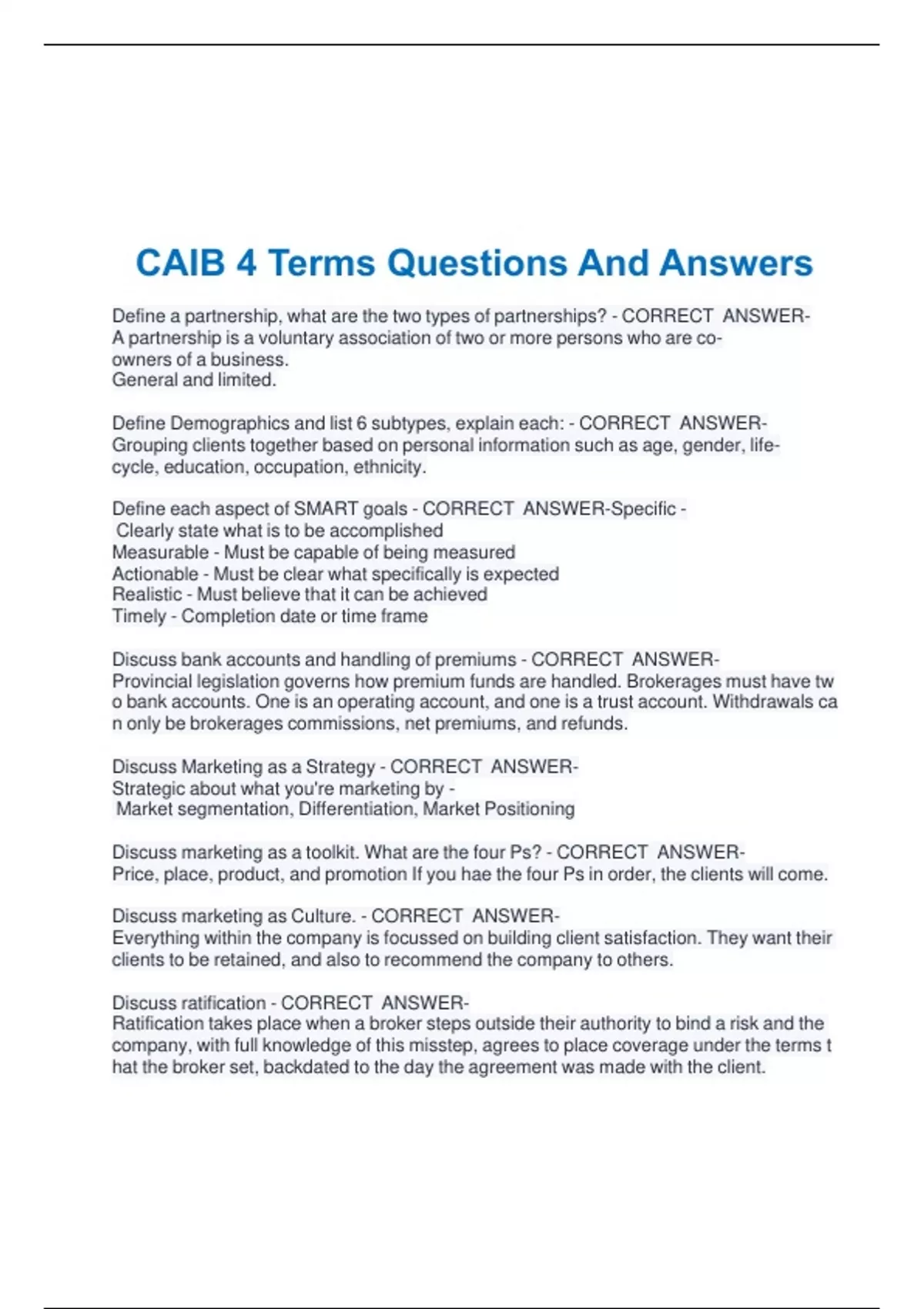 CAIB 4 Terms Questions And Answers