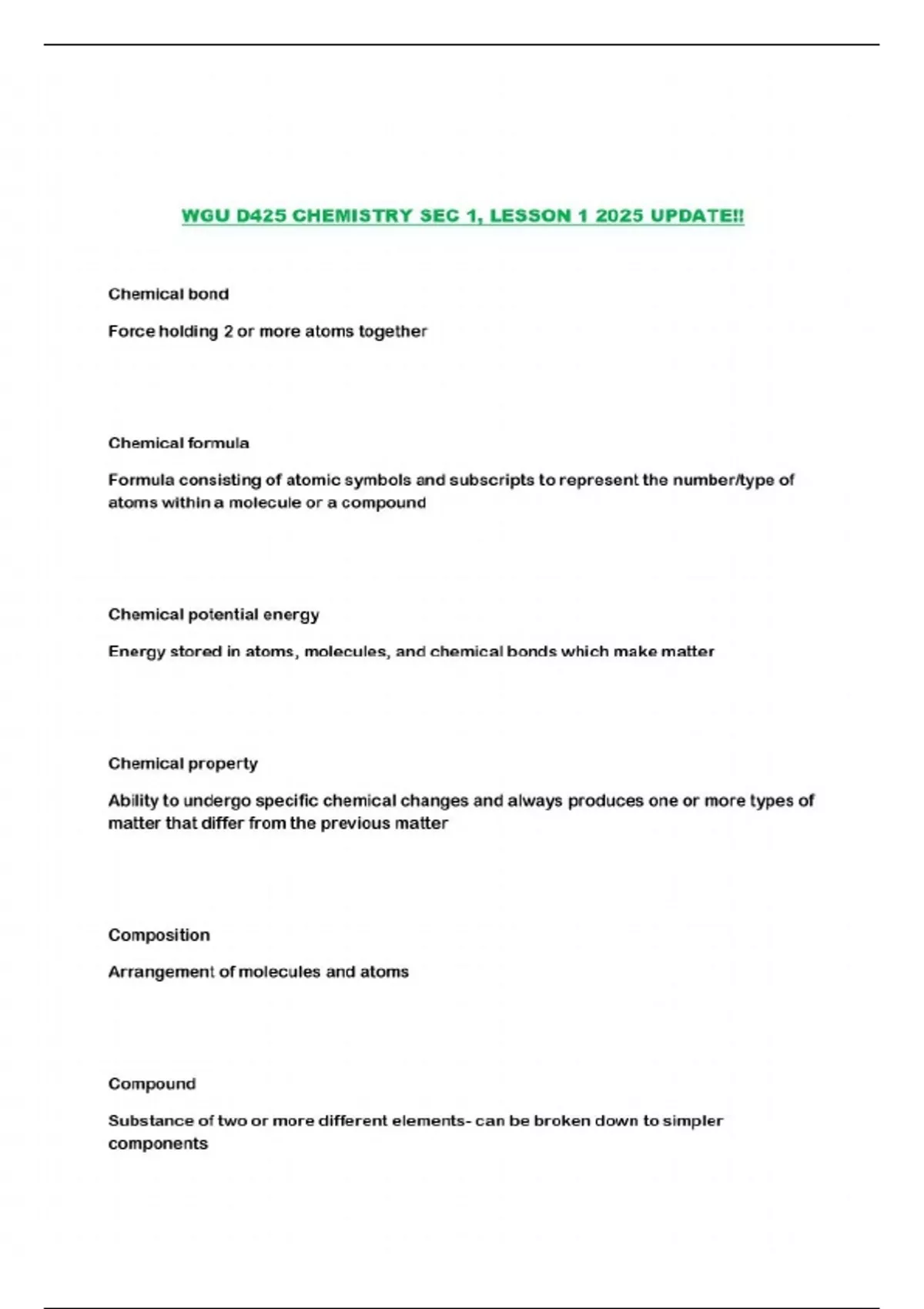 - WGU D425 CHEMISTRY SEC 1, LESSON 1 2025