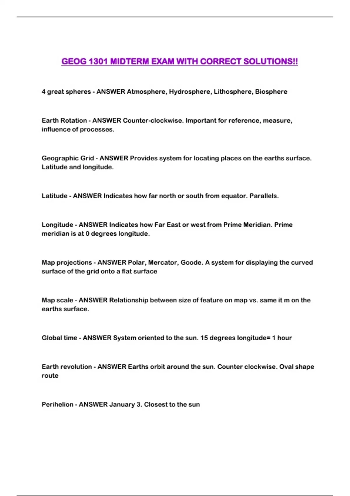 GEOG 1301 MIDTERM EXAM WITH CORRECT SOLUTIONS!!