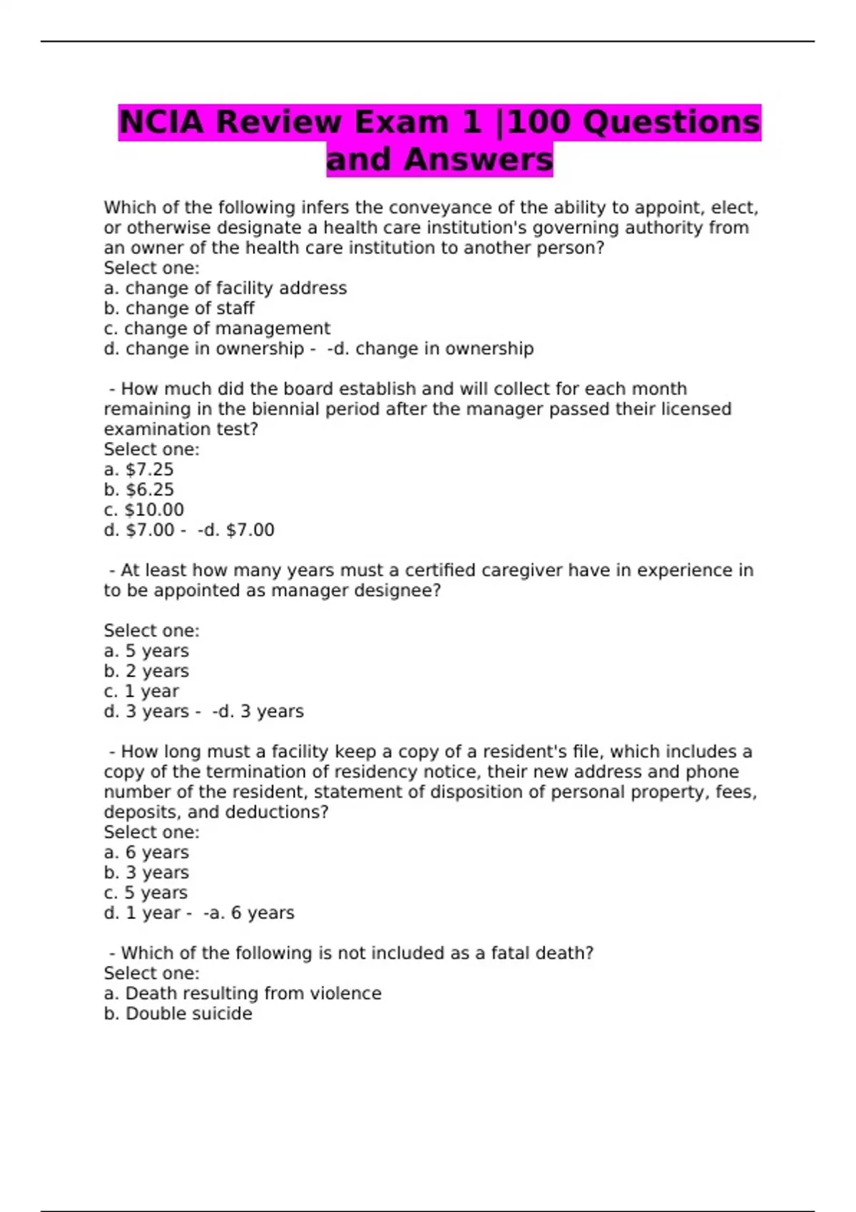 , d. NCIA Board - -b. Department of Health Services and Bureau of Licensing