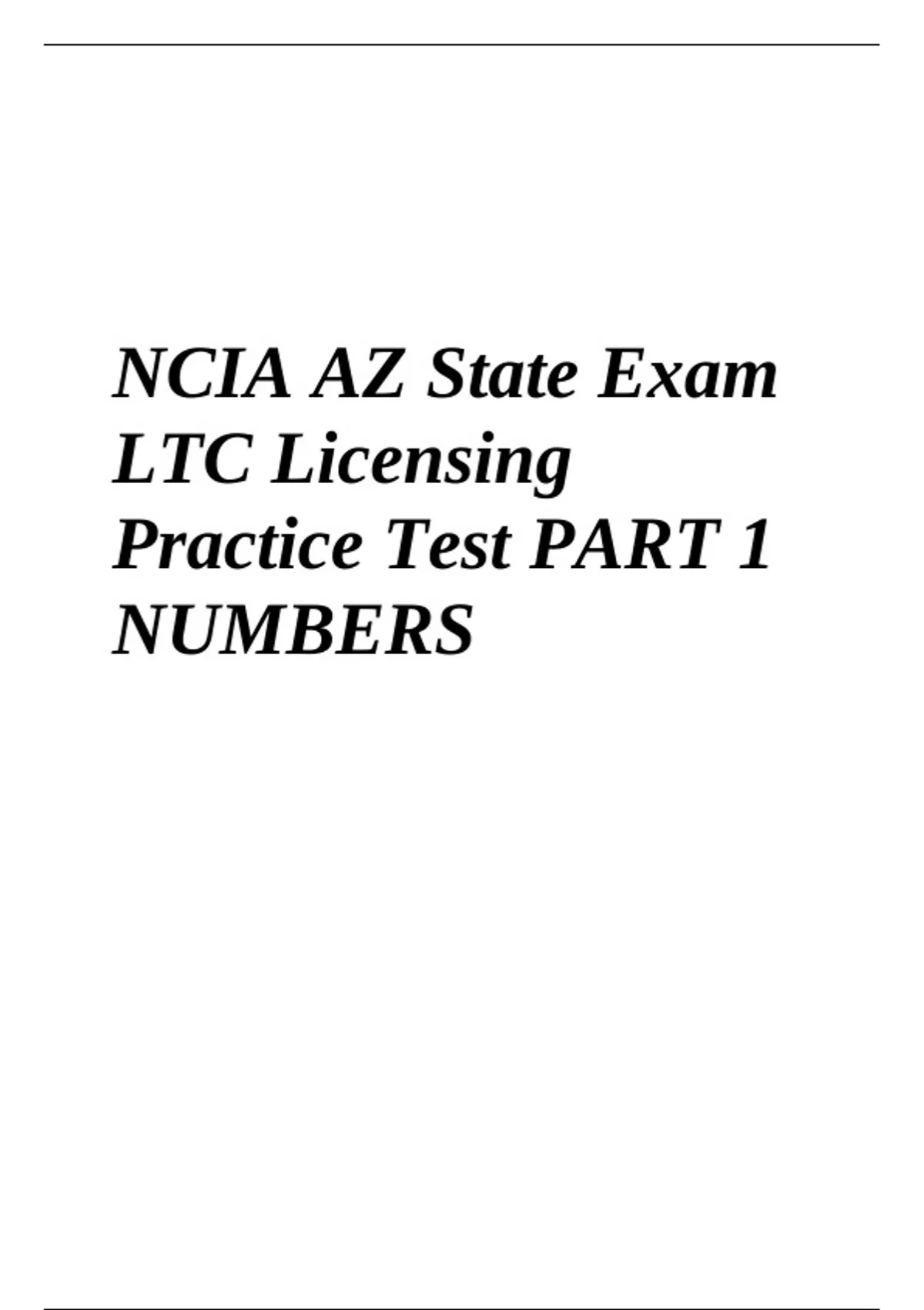 NCIA AZ State Exam LTC Licensing Practice Test PART 1 NUMBERS