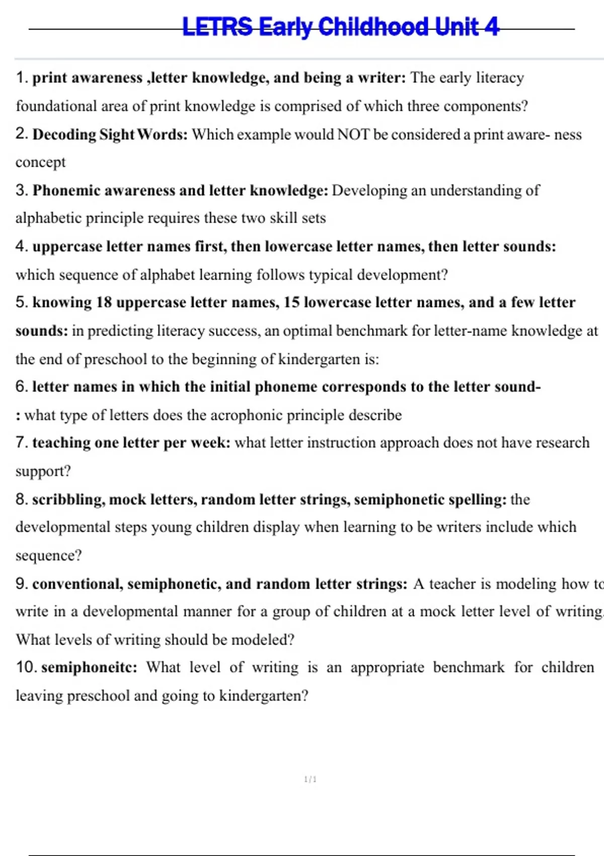 1. print awareness ,letter knowledge, and being a writer: The early literacy