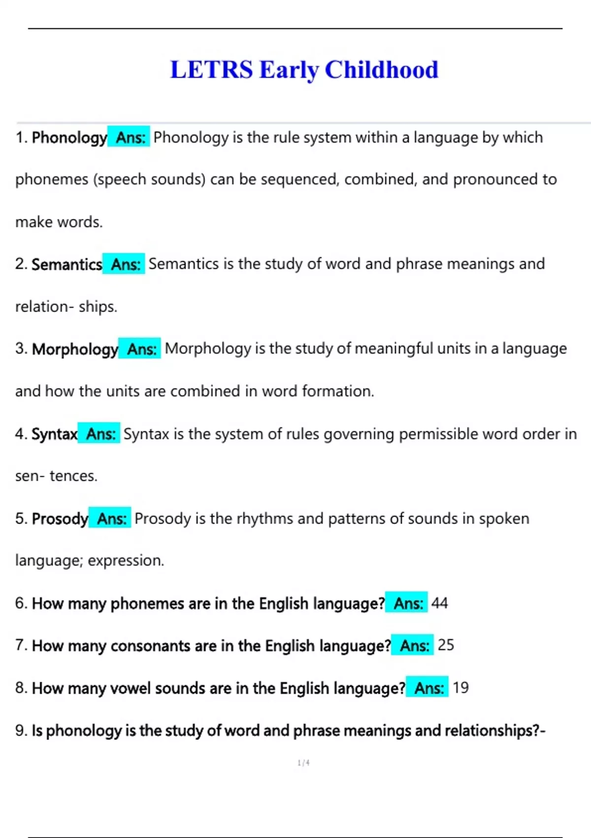 6. How many phonemes are in the English language? Ans: 44
