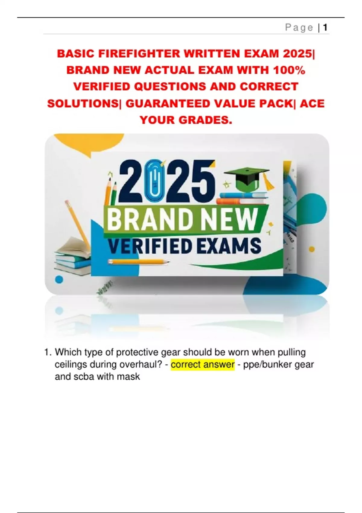 BASIC FIREFIGHTER WRITTEN EXAM 2025| BRAND NEW ACTUAL EXAM WITH 100% VERIFIED QUESTIONS AND CORRECT SOLUTIONS| GUARANTEED VALUE PACK| ACE YOUR GRADES.