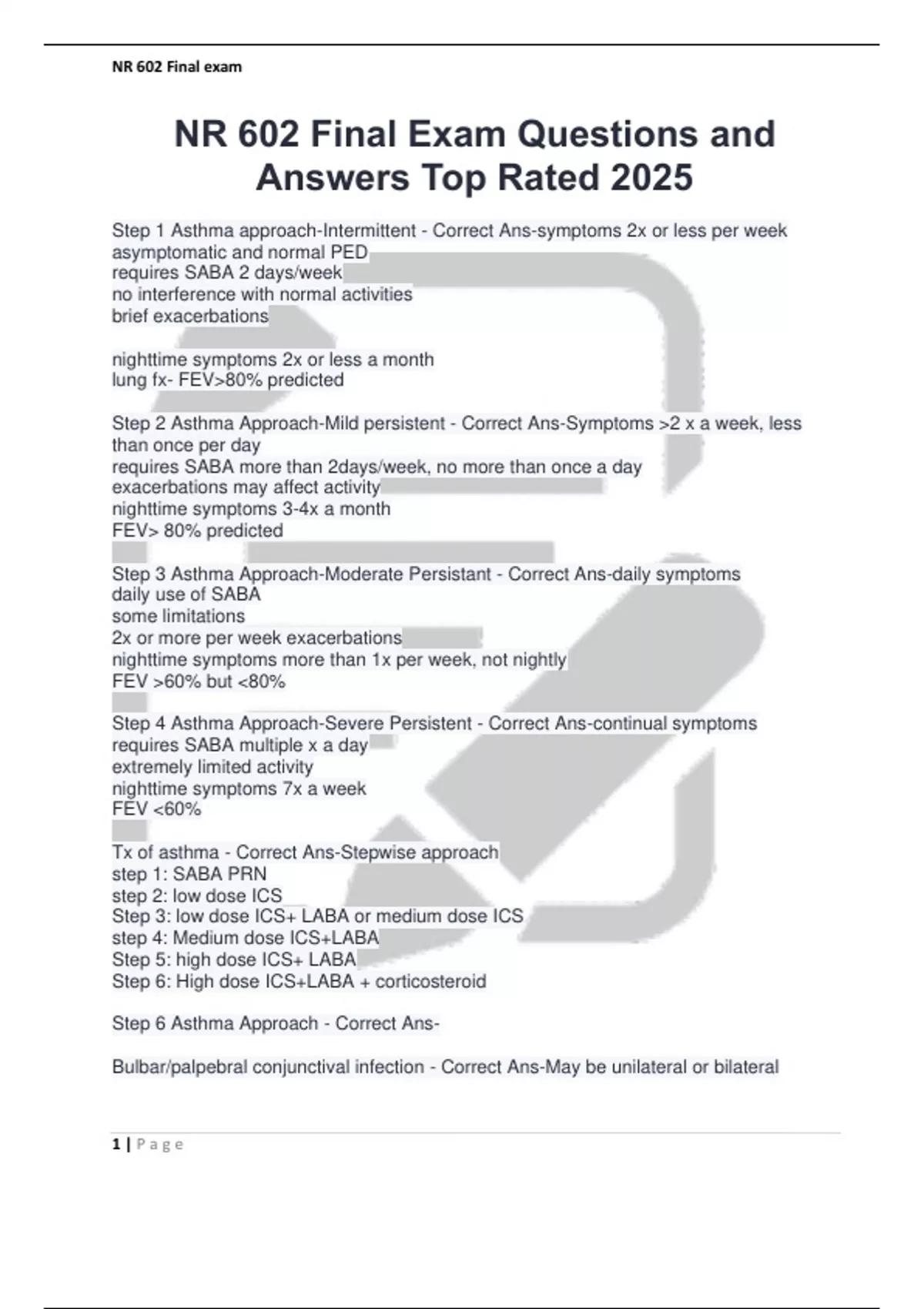 Step 6 Asthma Approach - Correct Ans-