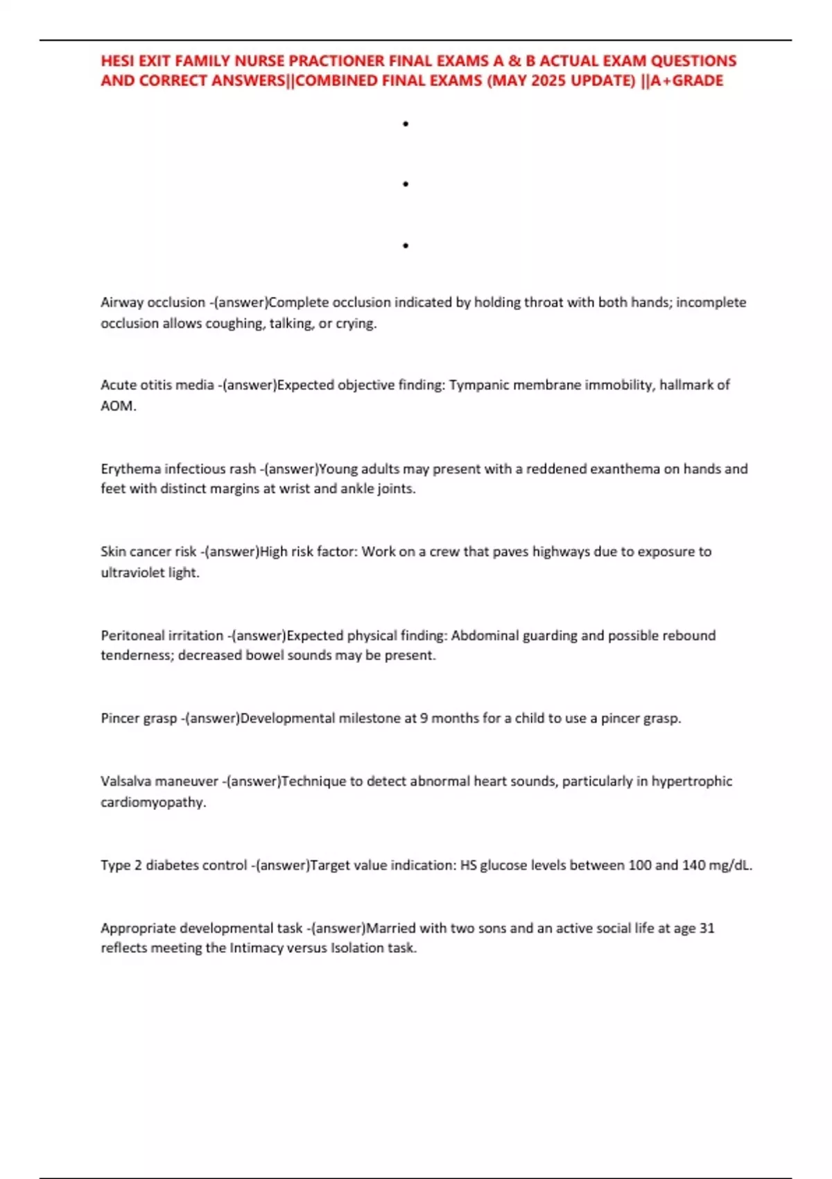 , HESI EXIT FAMILY NURSE PRACTIONER FINAL EXAMS A & B ACTUAL EXAM QUESTIONS