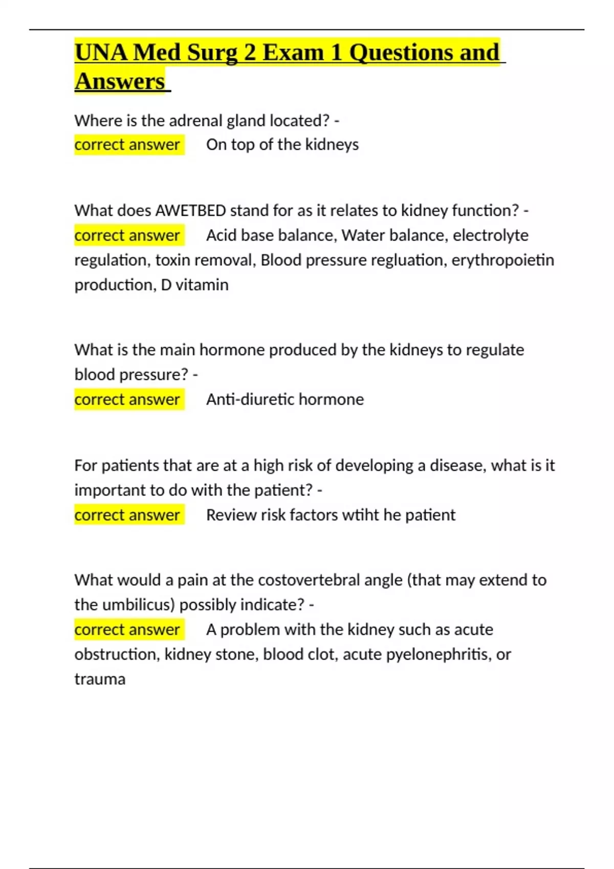 , UNA Med Surg 2 Exam 1 Questions and