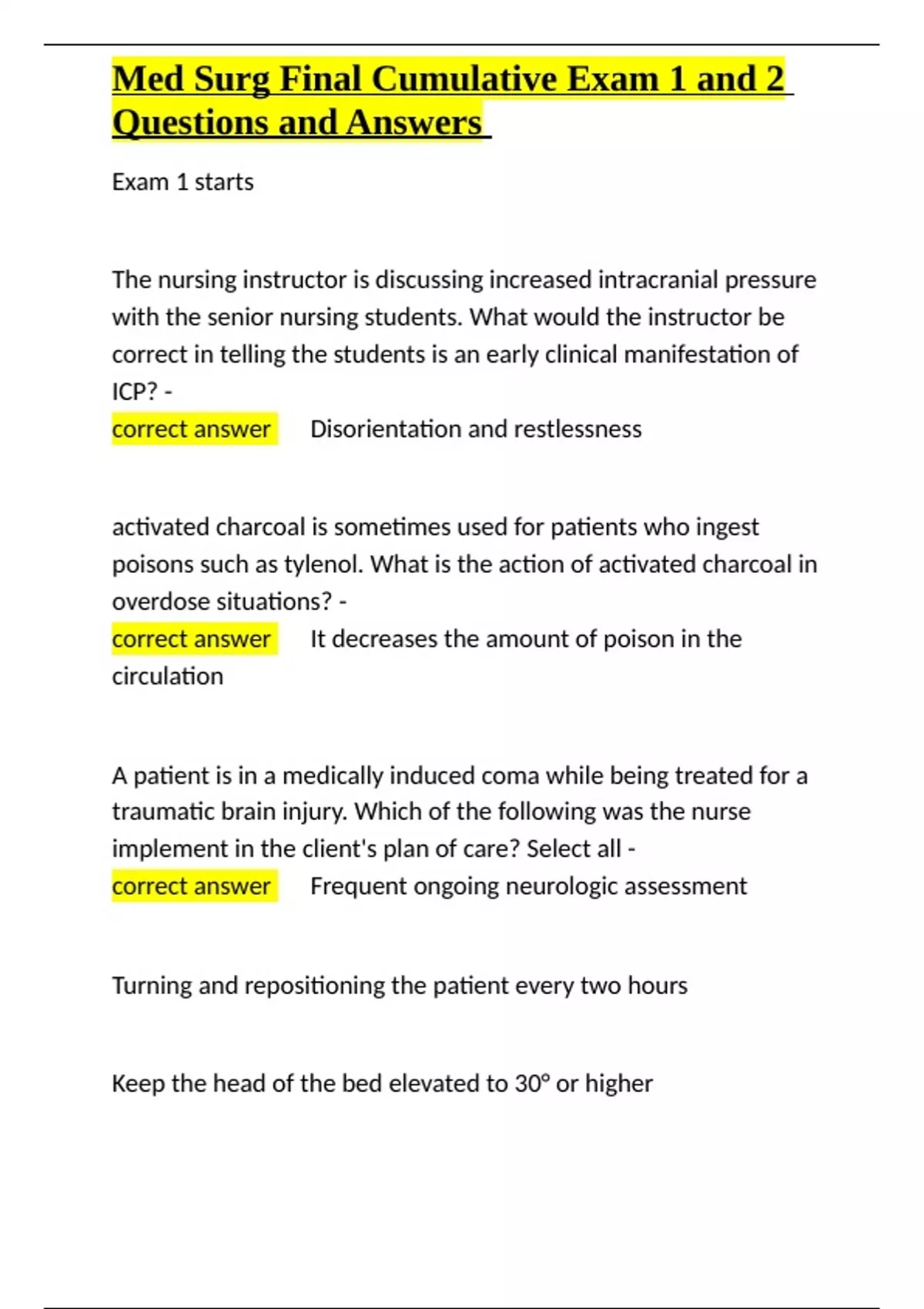 Med Surg Final Cumulative Exam 1 and 2 Questions and A