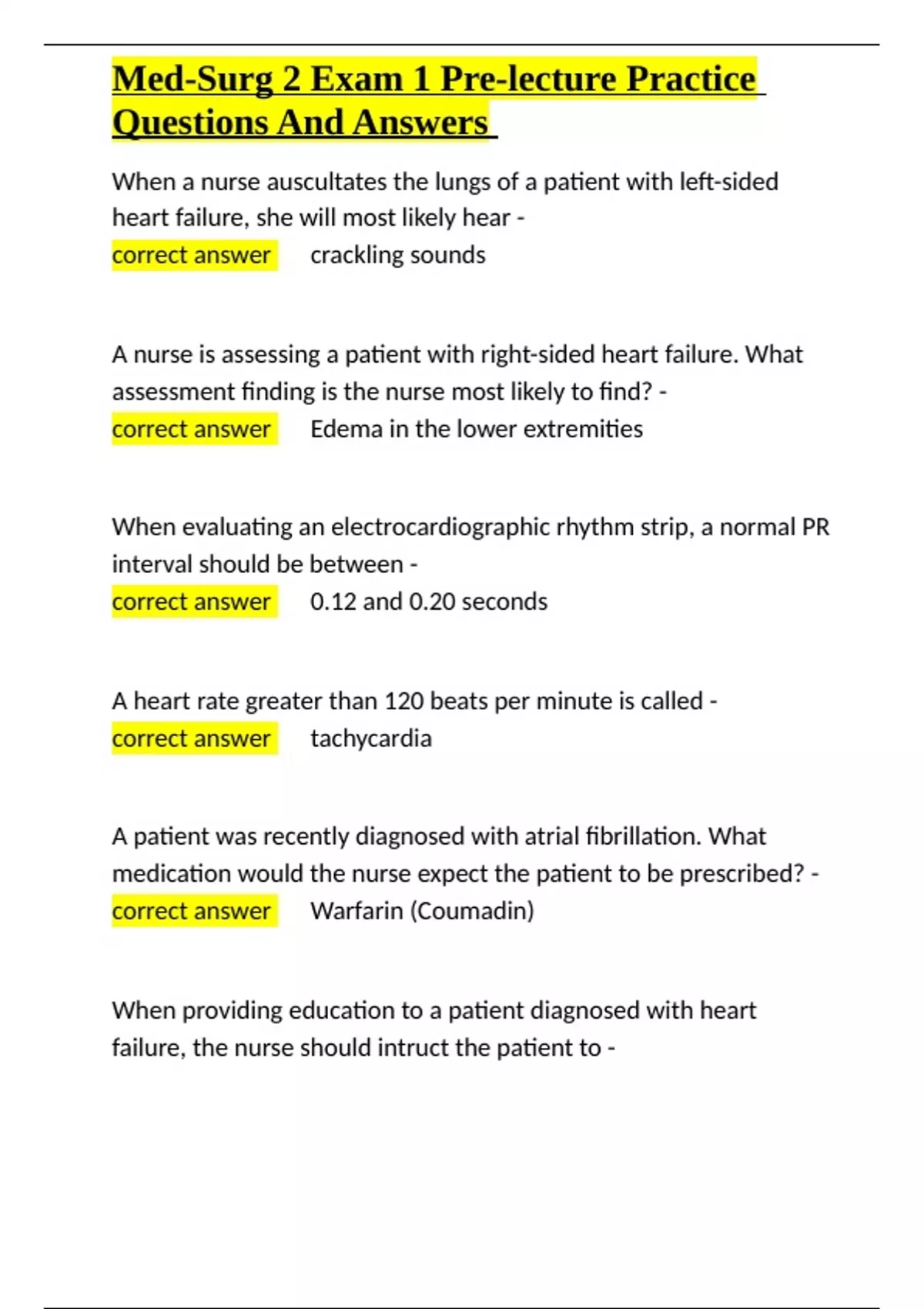 , Med-Surg 2 Exam 1 Pre-lecture Practice