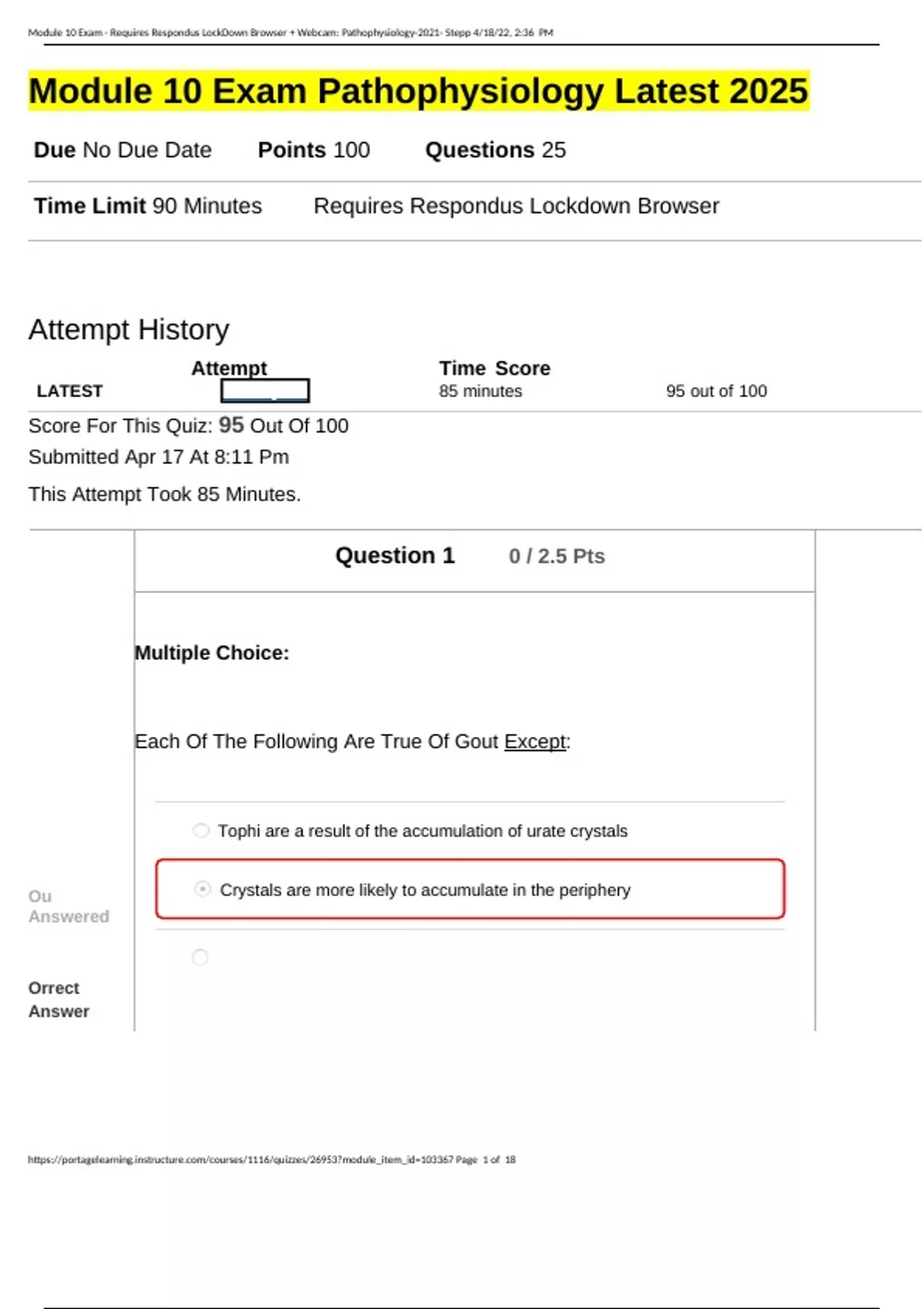 , Module 10 Exam - Requires Respondus LockDown Browser + Webcam: Pathophysiology-2021- Stepp 4/18/22, 2:36 PM