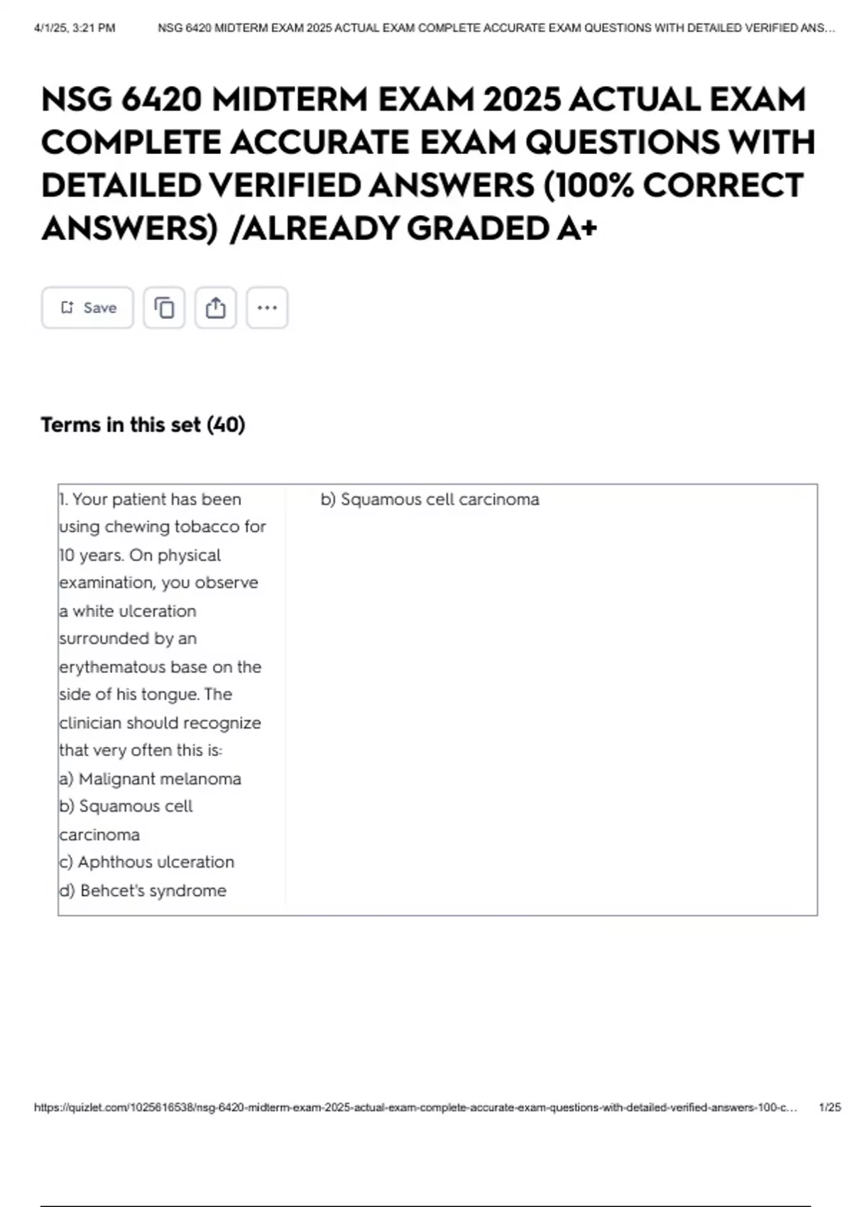 , 4/1/25, 3:21 PM NSG 6420 MIDTERM EXAM 2025 ACTUAL EXAM COMPLETE ACCURATE EXAM QUESTIONS WITH DETAILED VERIFIED ANS…