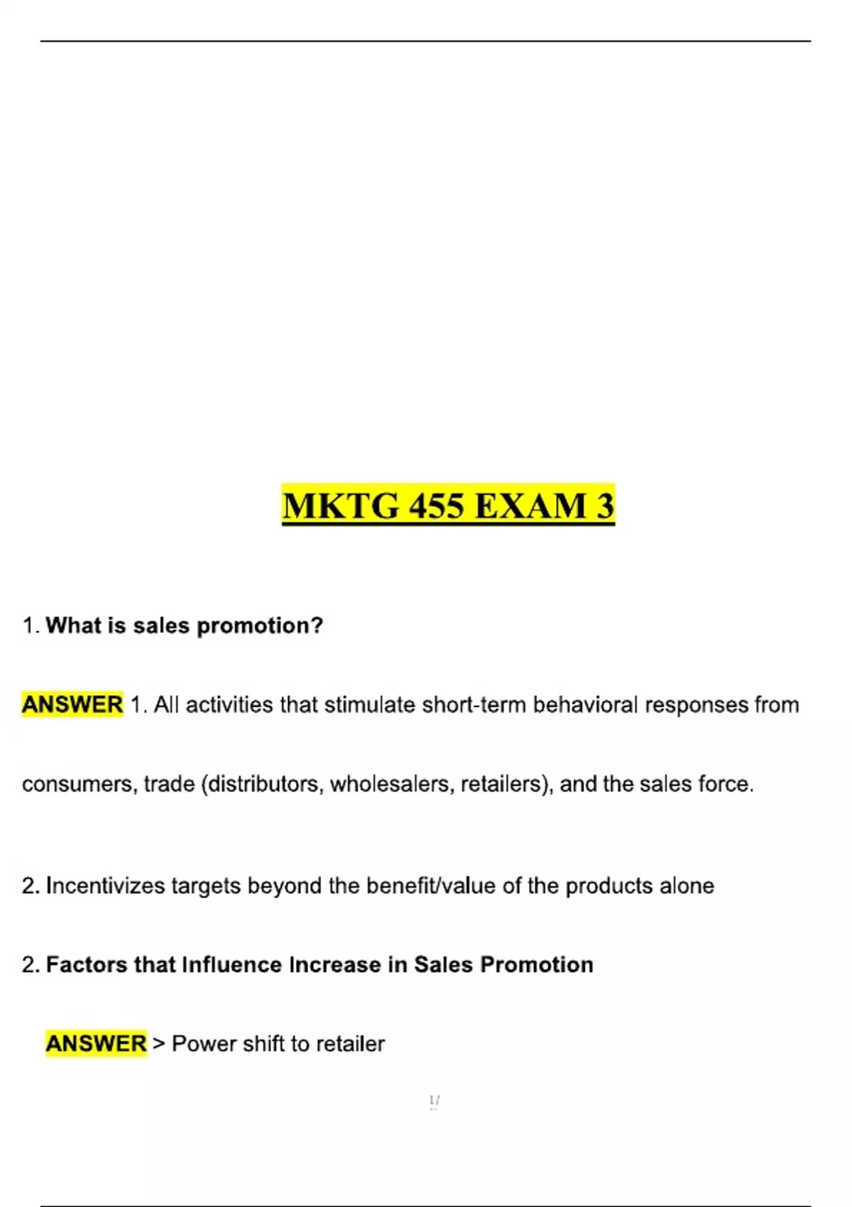 MKTG 455 Exam 3 Marketing Communications & Strategy Exam Questions And Answers