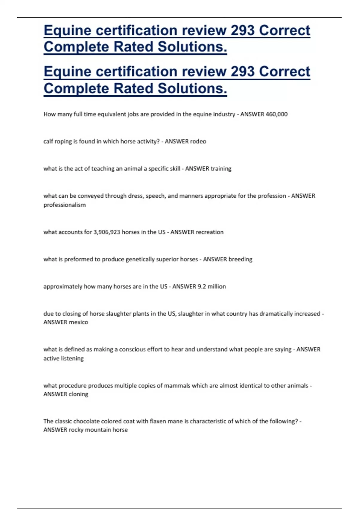 Equine certification review 293 Correct Complete Rated Solutions.