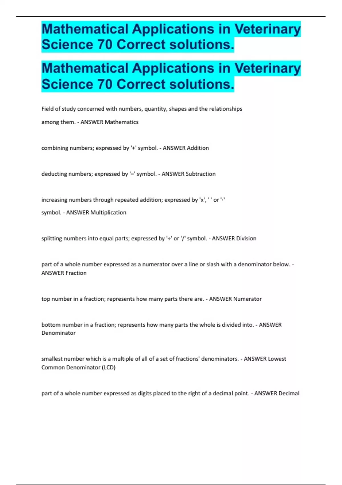 Mathematical Applications in Veterinary
