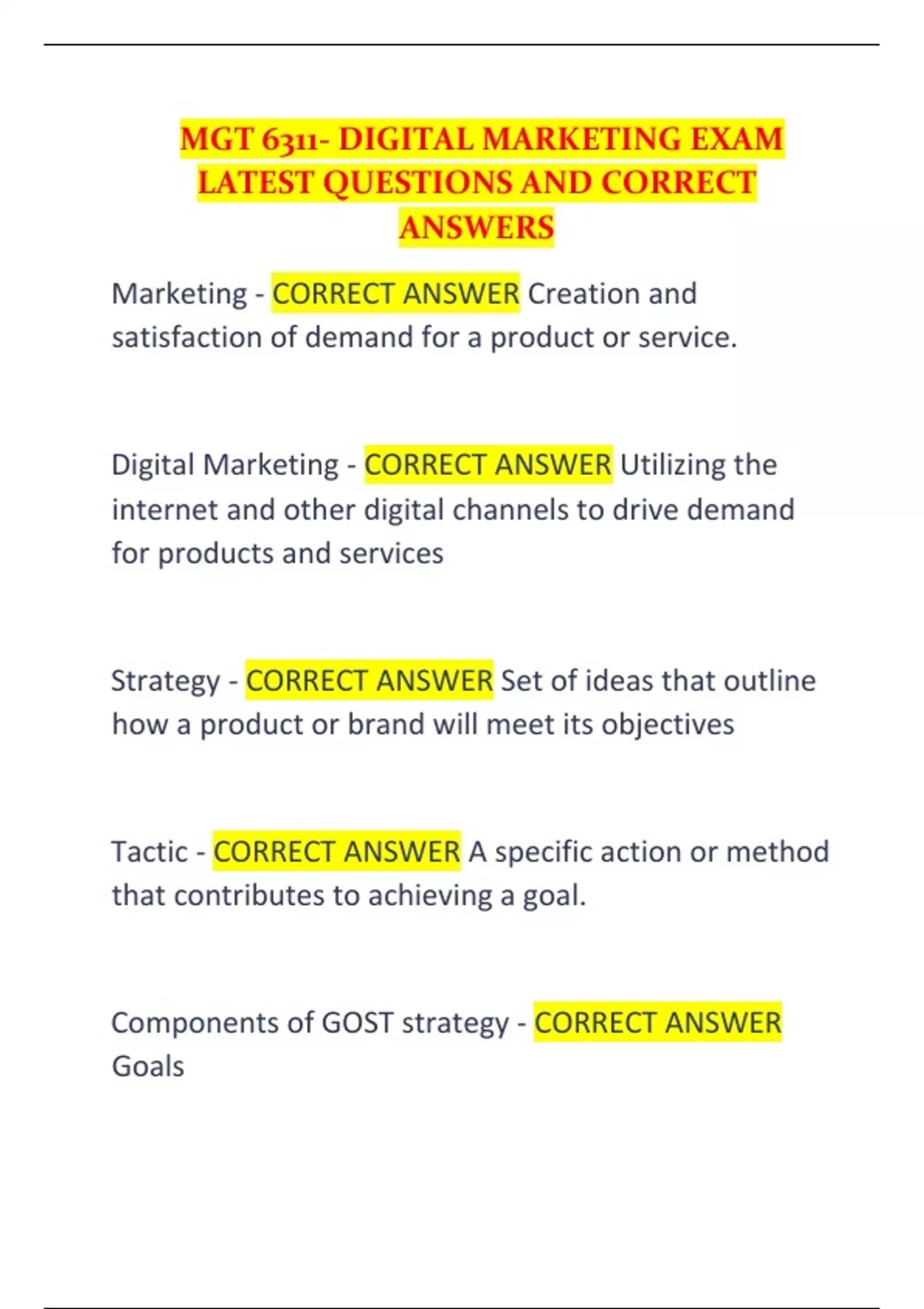 MGT 6311- DIGITAL MARKETING EXAM LATEST QUESTIONS AND CORRECT ANSWERS