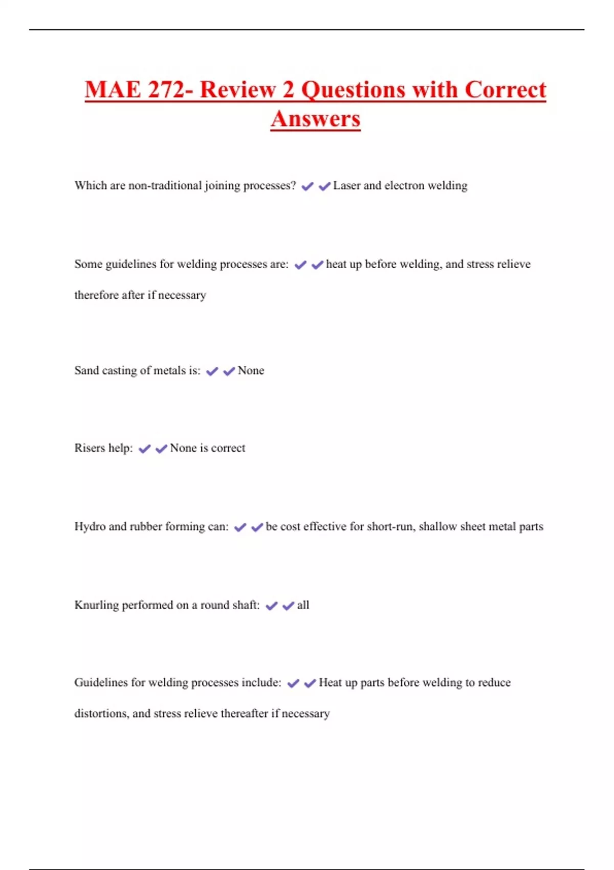 Guidelines for welding processes include: Heat up parts before welding to reduce