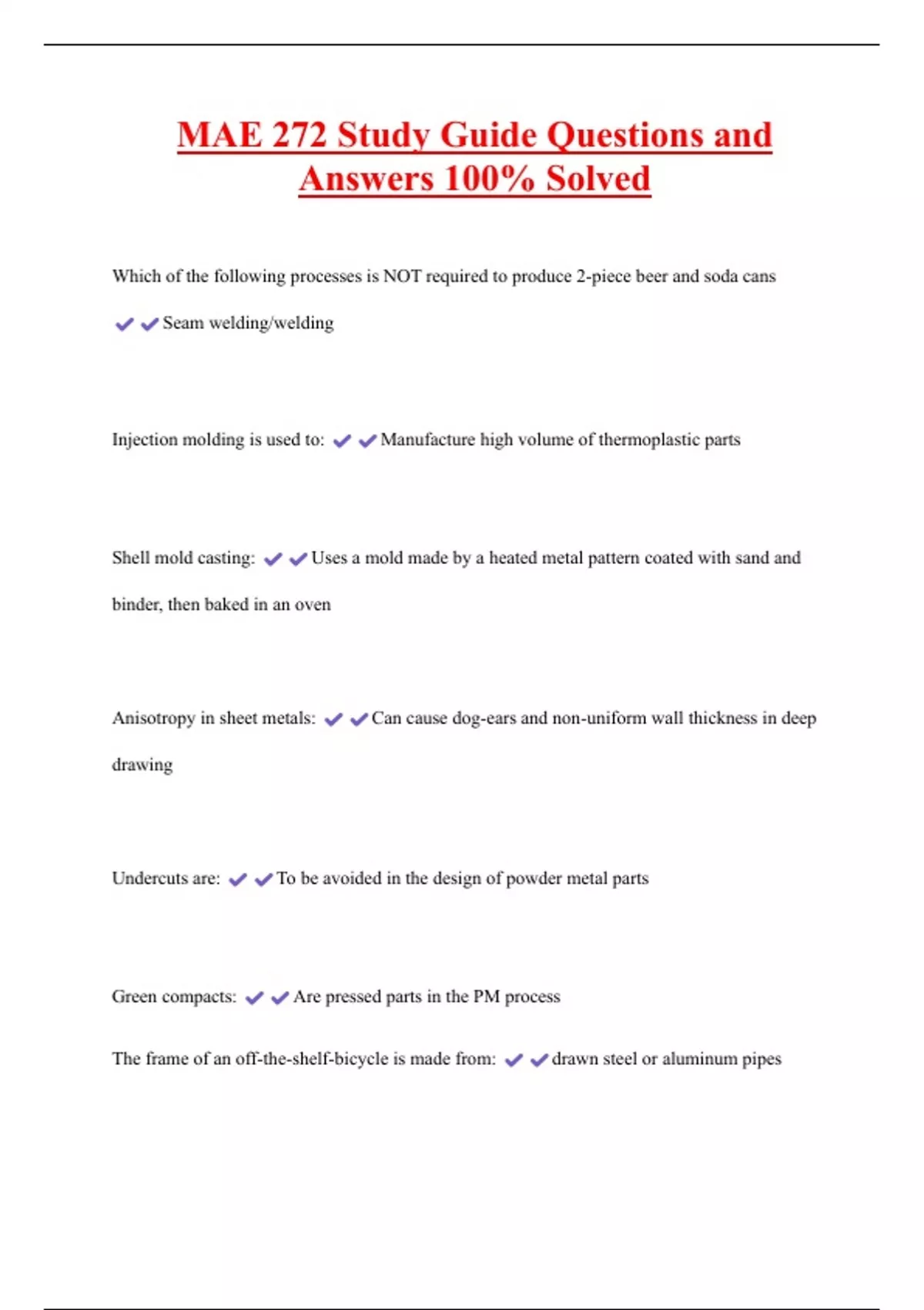 MAE 272 Study Guide Questions and Answers 100% Solved