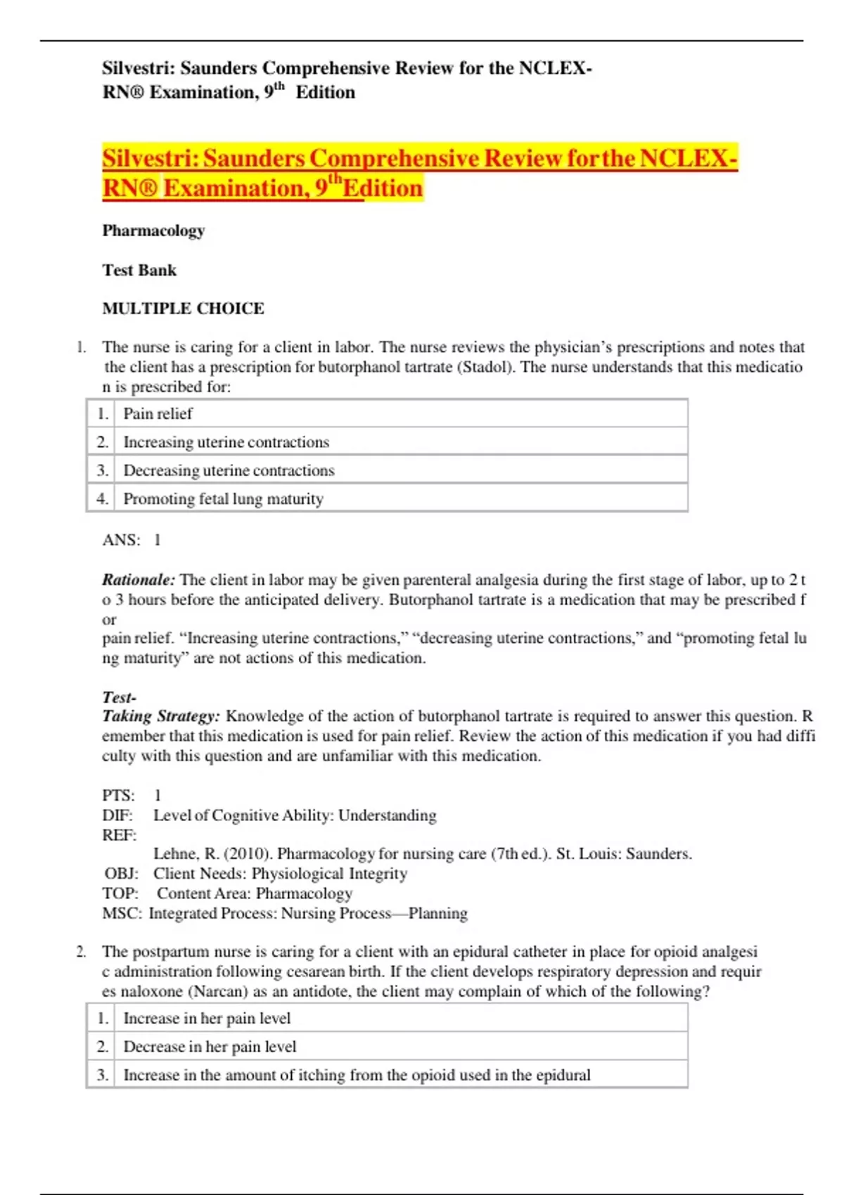 1. The nurse is caring for a client in labor. The nurse reviews the physician’s prescriptions and notes that