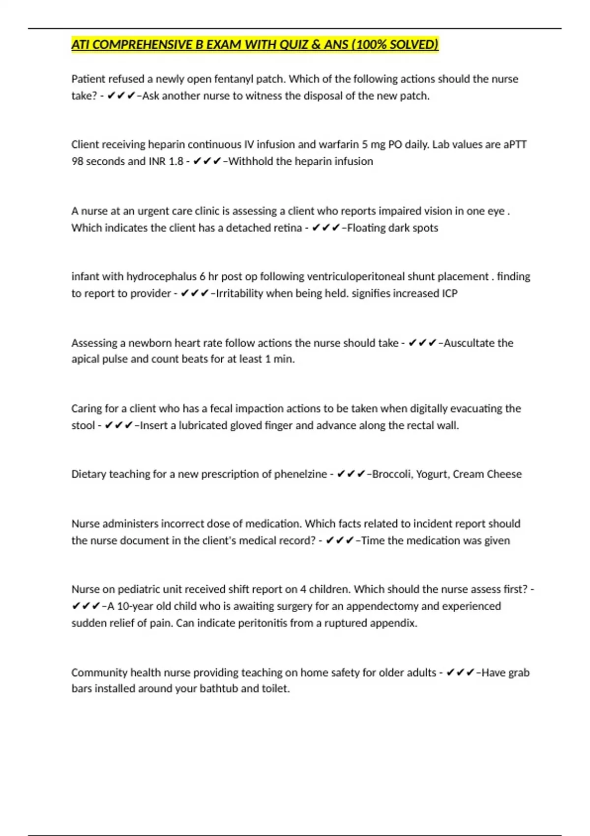 ,ATI COMPREHENSIVE B EXAM WITH QUIZ & ANS (100% SOLVED)