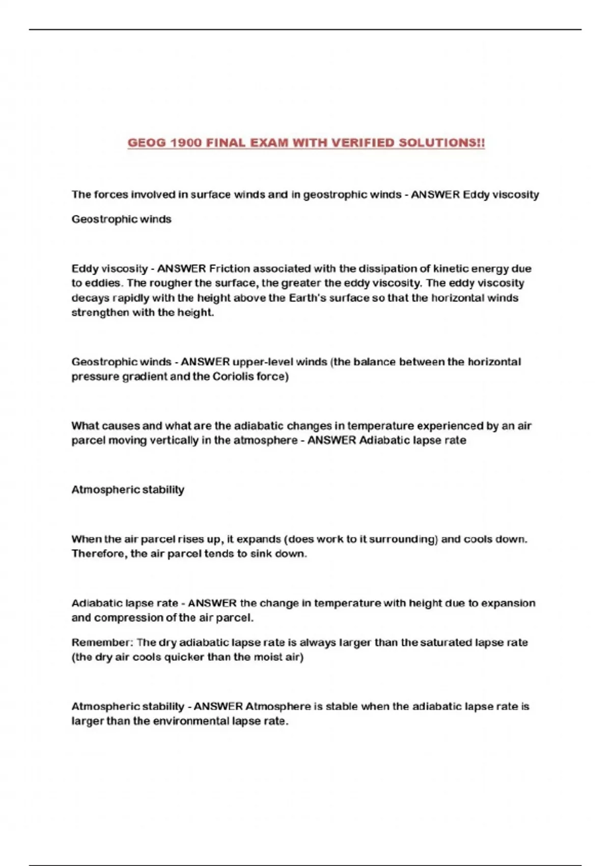 GEOG 1900 FINAL EXAM WITH VERIFIED SOLUTIONS!!...