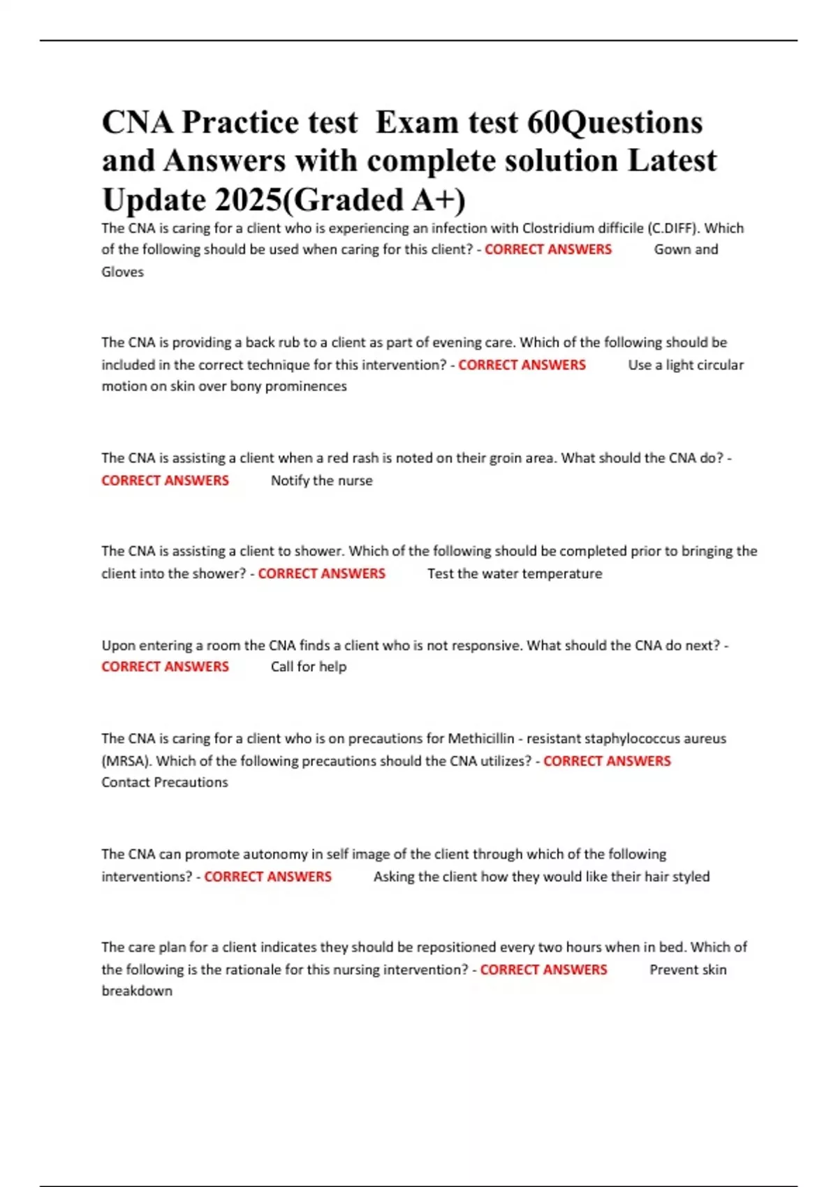 client into the shower? - CORRECT ANSWERS Test the water temperature